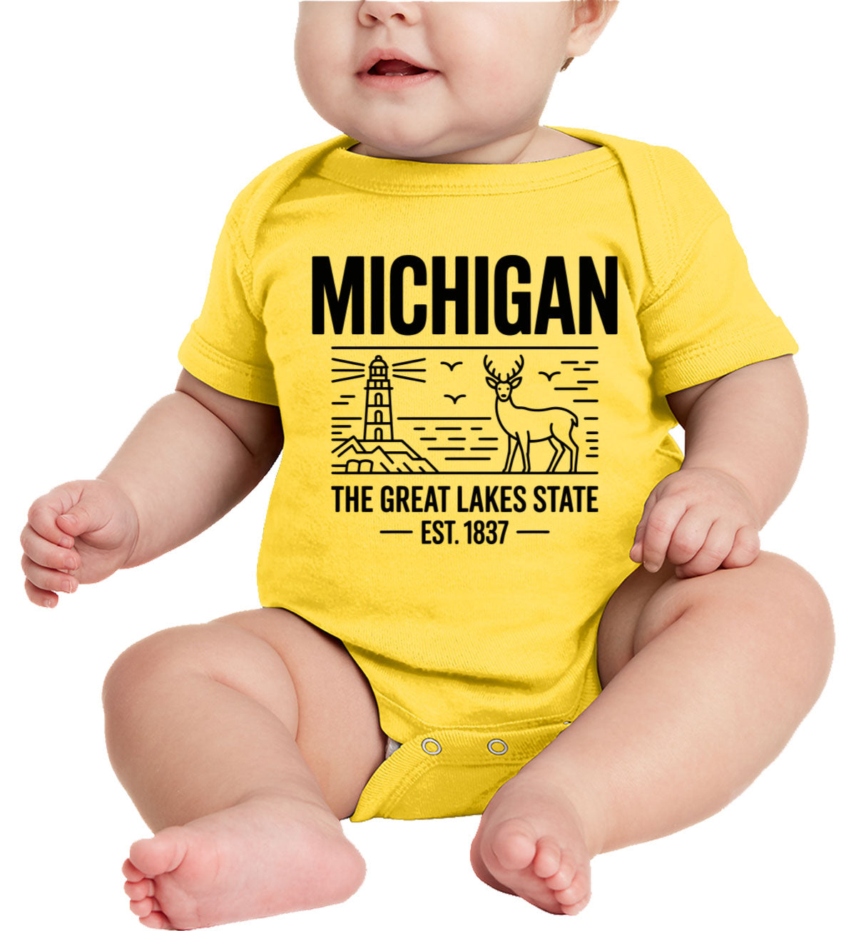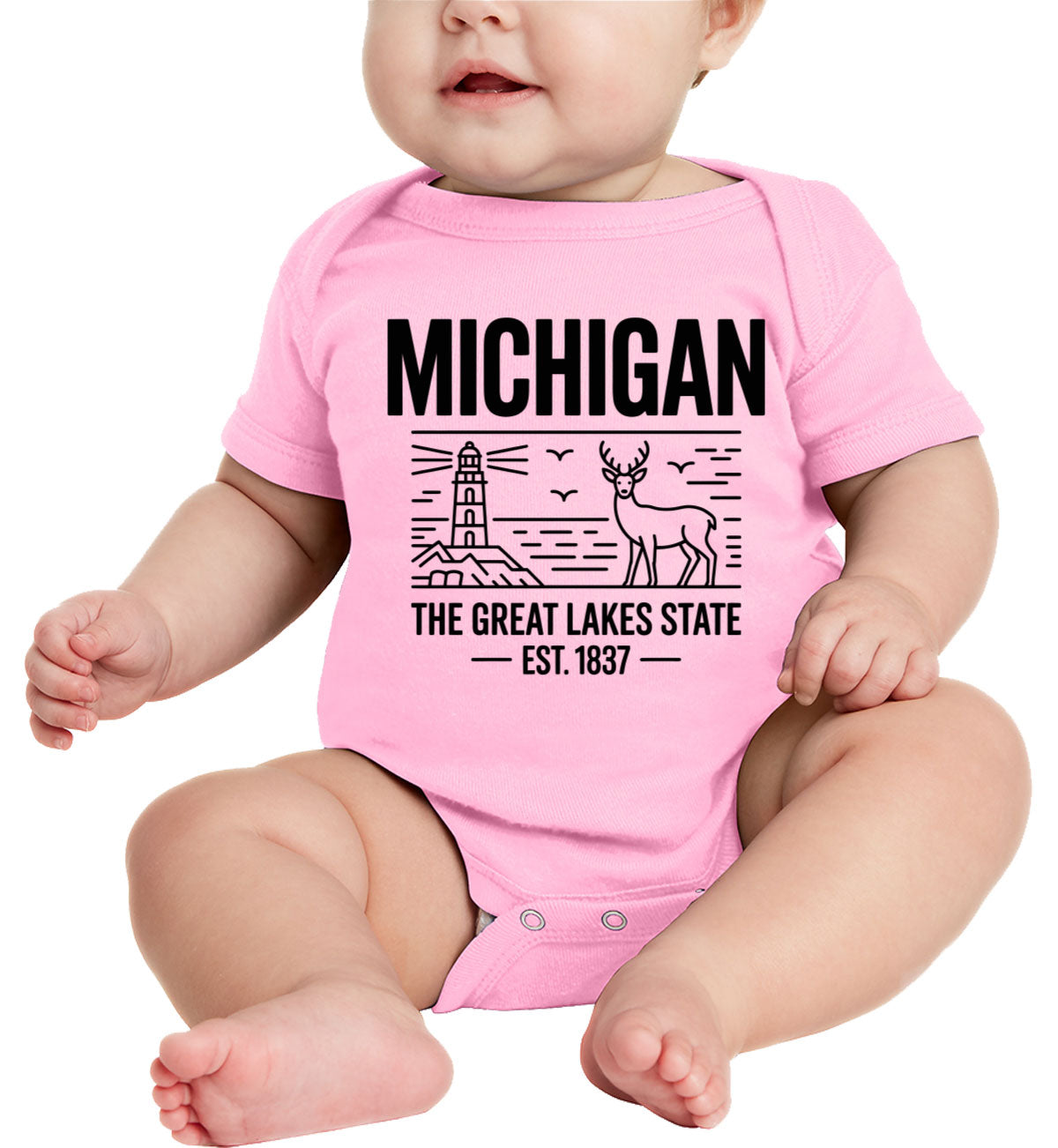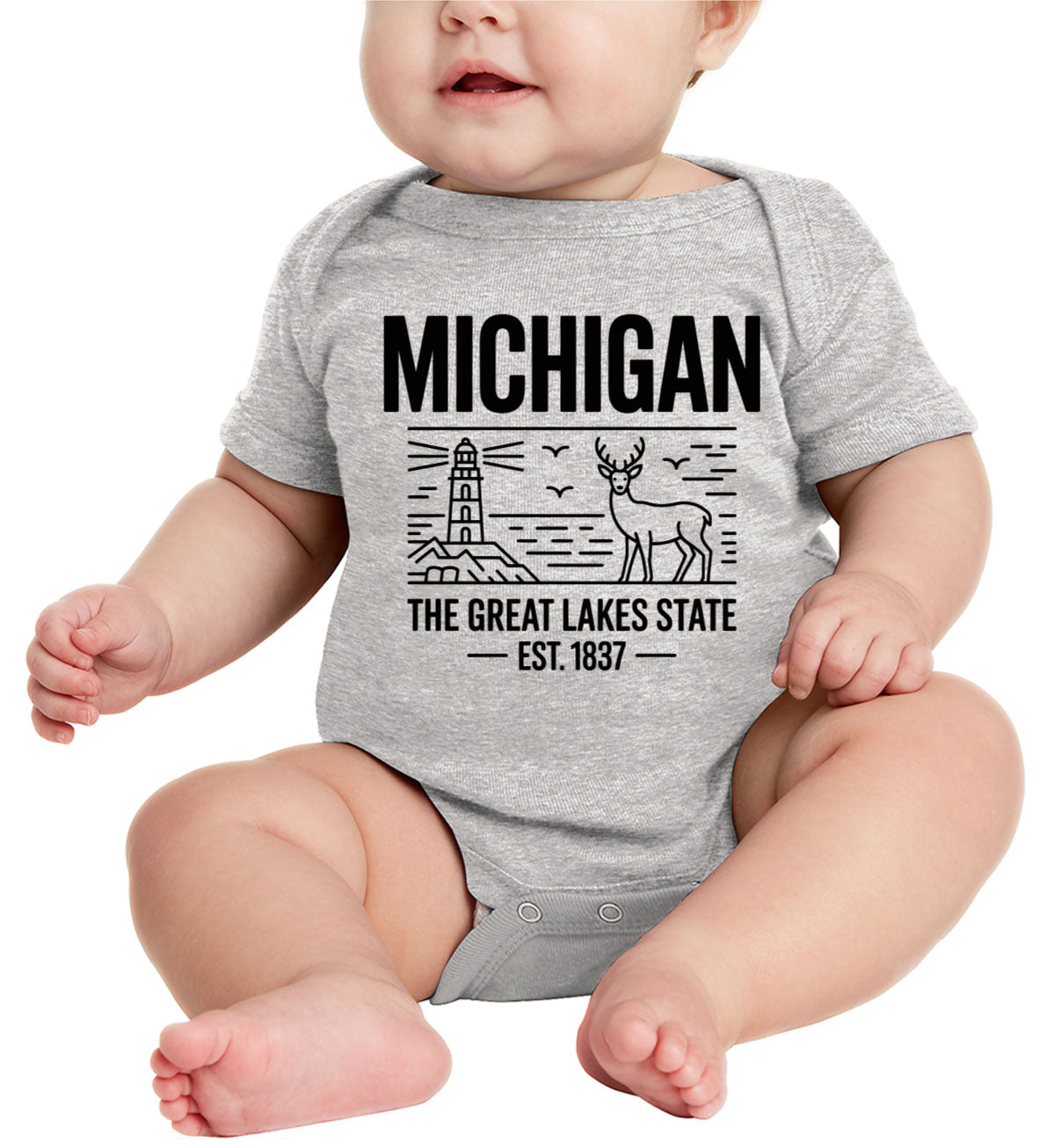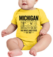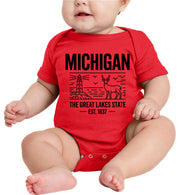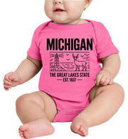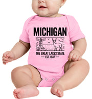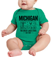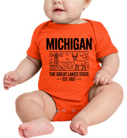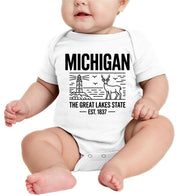 Michigan Cityscape Illustration The Great Lakes State Baby Onesie