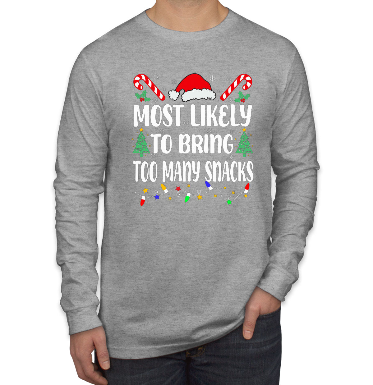 Most Likely To Bring Too Many Snacks Christmas Men's Long Sleeve Shirt