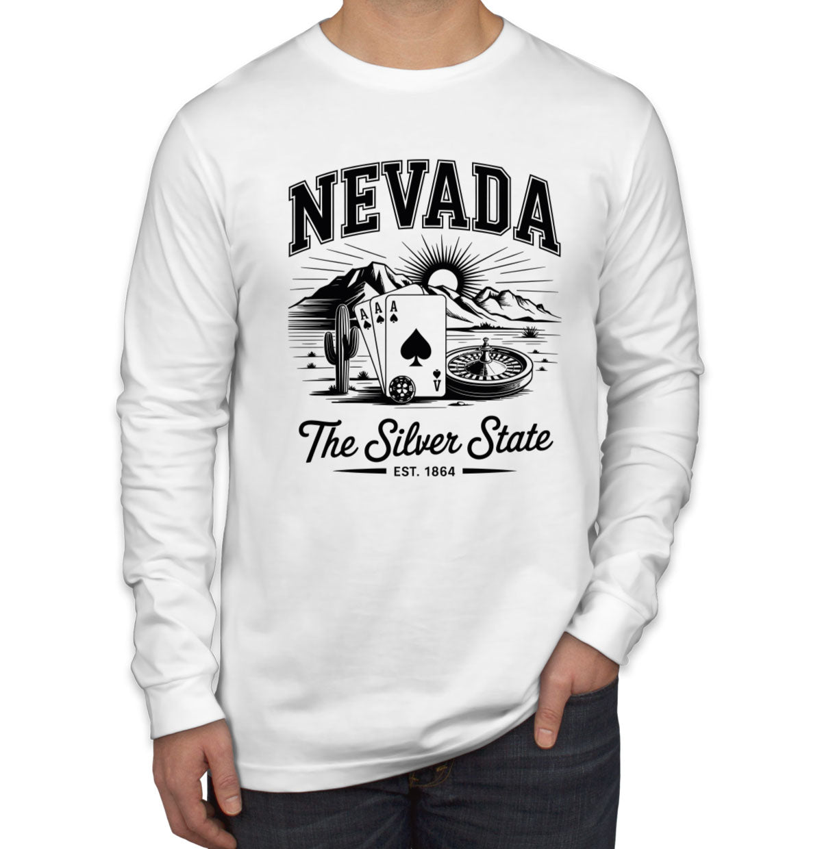 Nevada Cityscape Illustration The Silver State Men's Long Sleeve Shirt