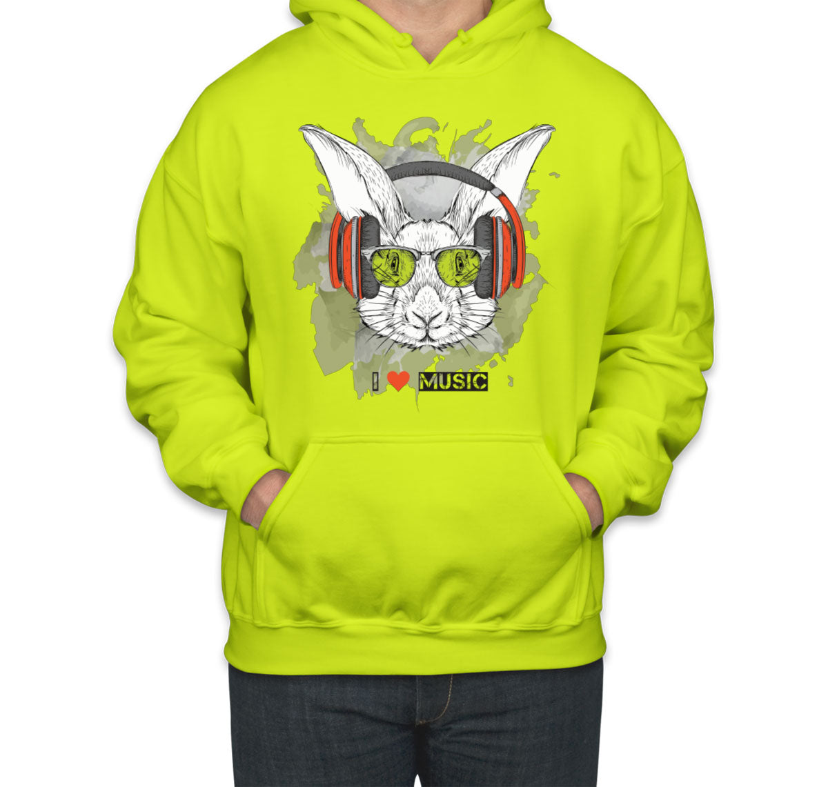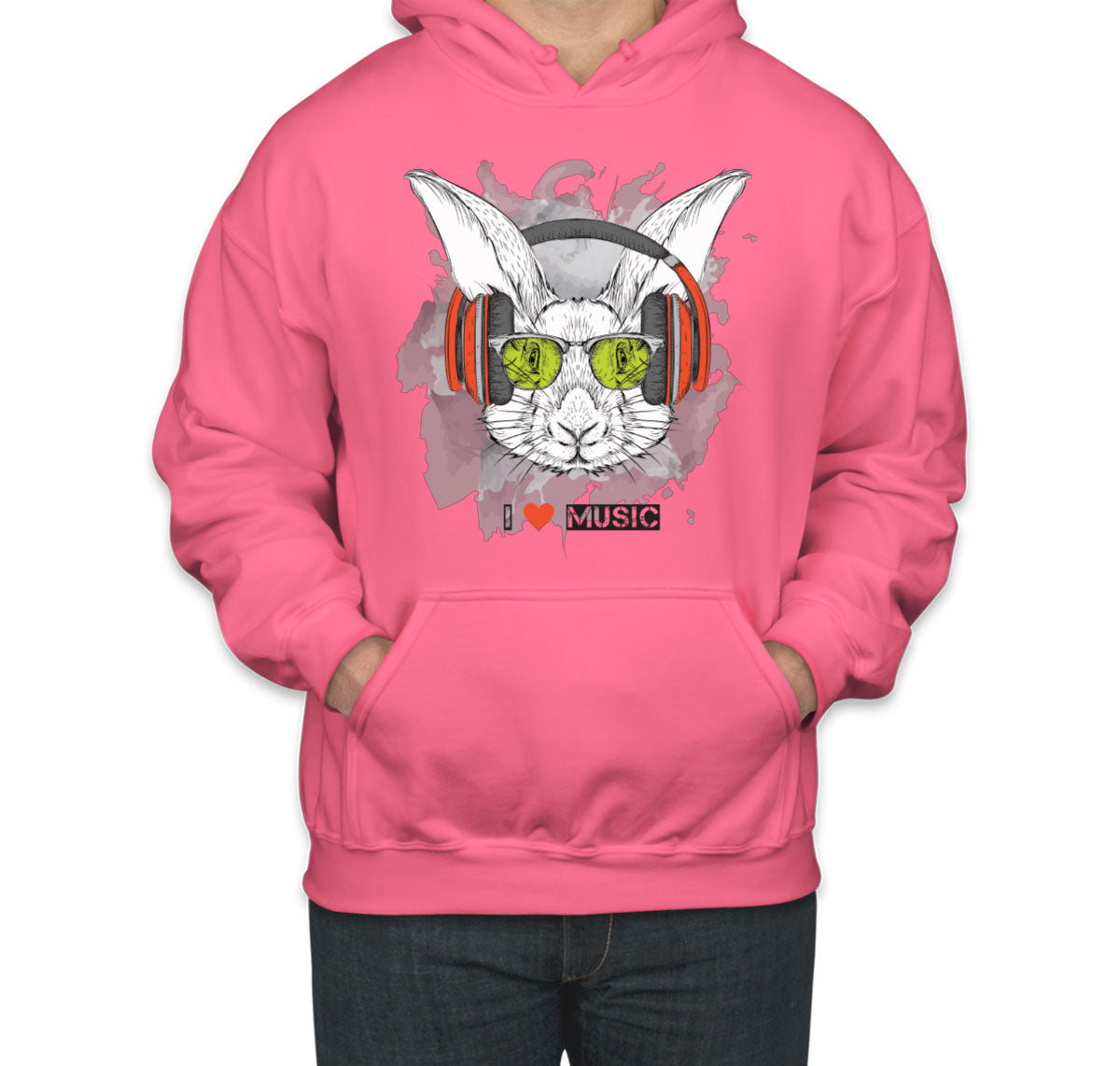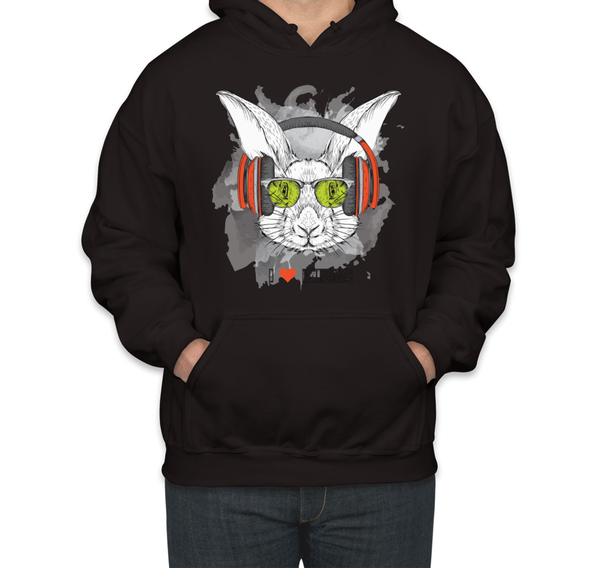 I Love Music Rabbit With Headphones Unisex Hoodie