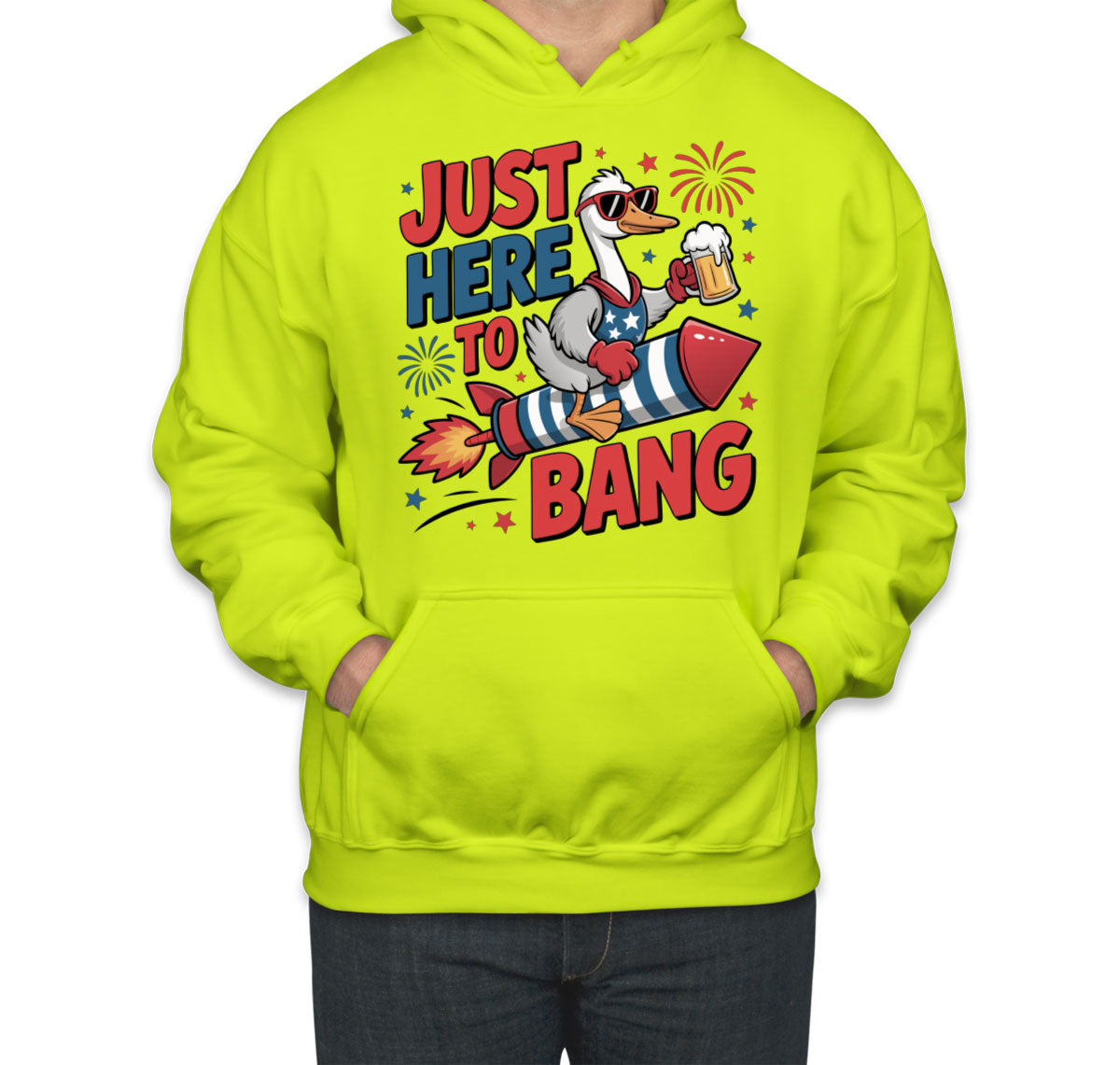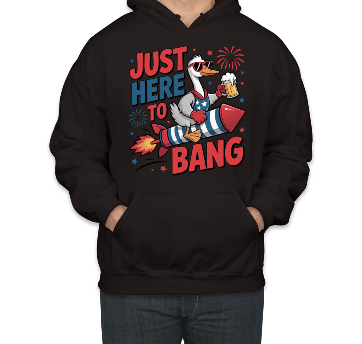 Just Here To Bang Independence Day Patriotic Unisex Hoodie