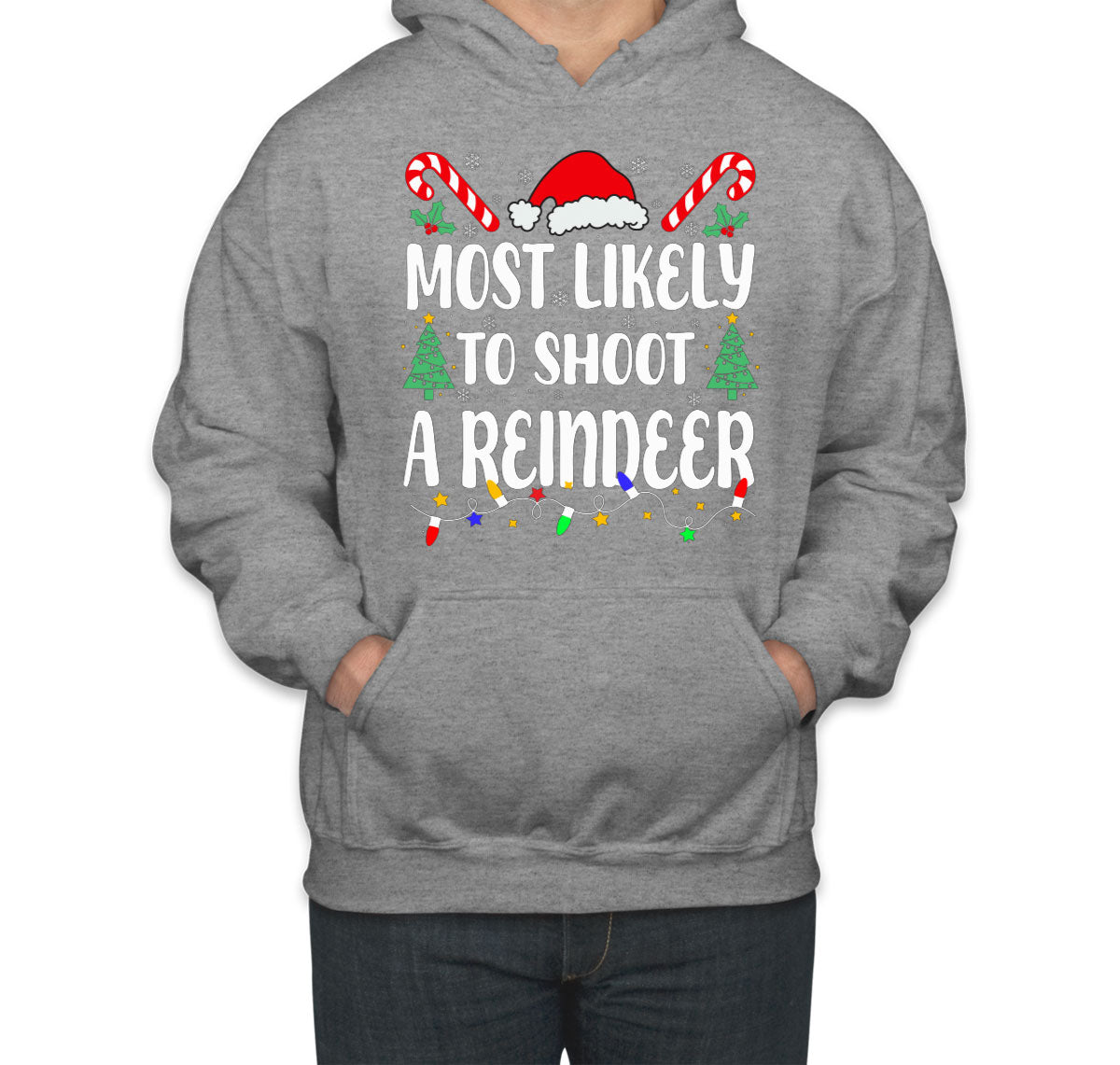 Most Likely To Shoot A Reindeer Christmas Unisex Hoodie