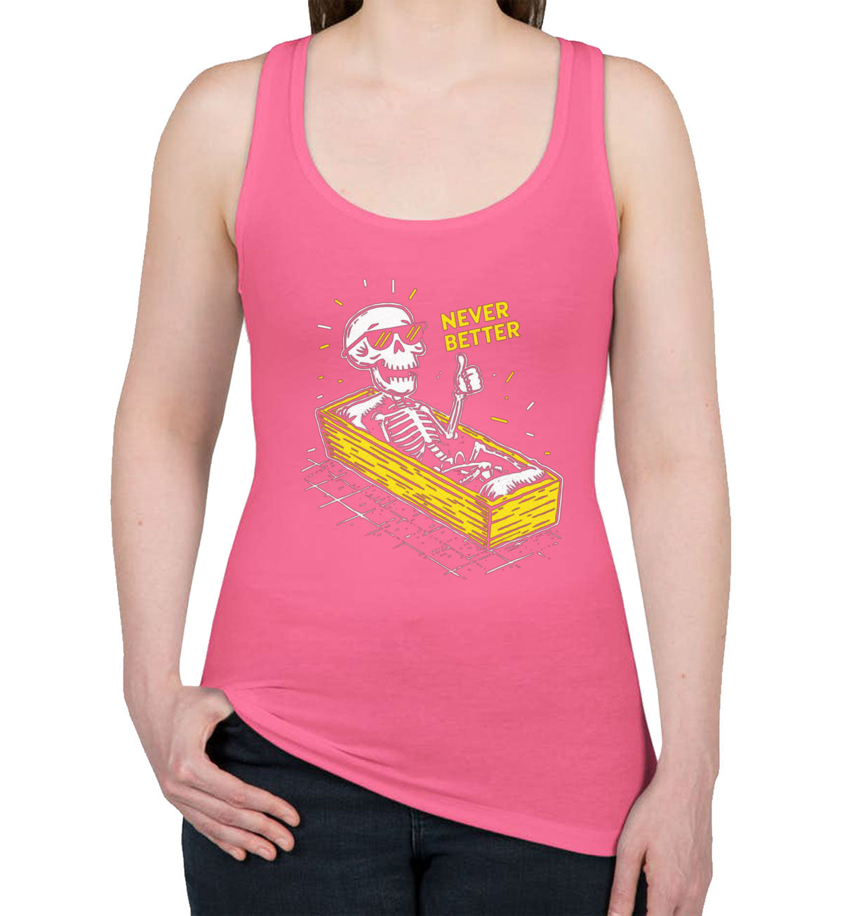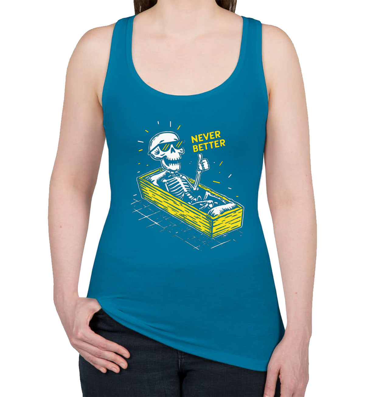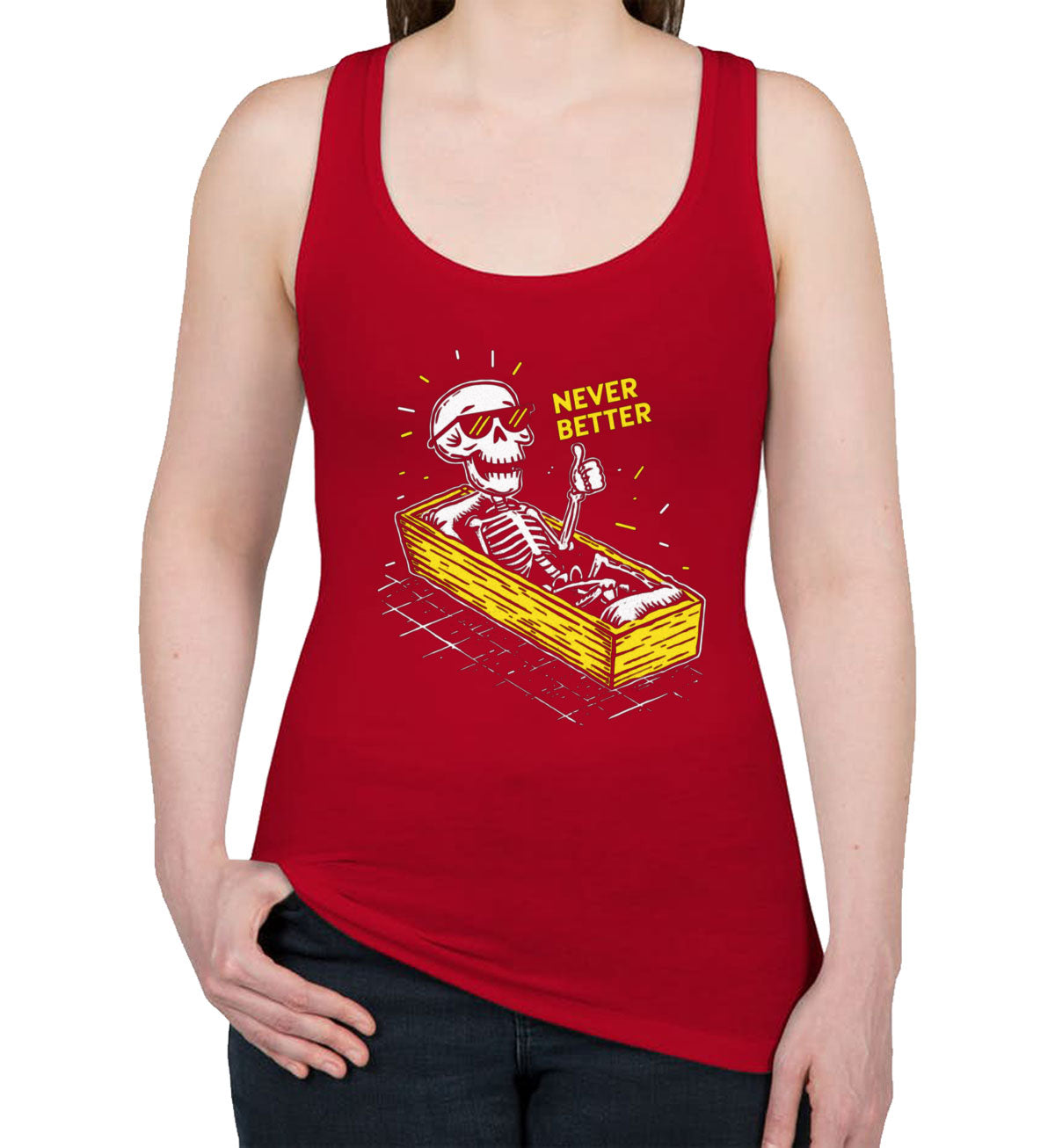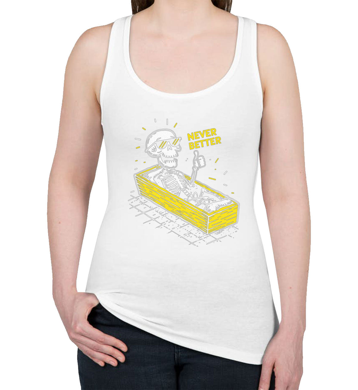 Never Better Skeleton Women's Racerback Tank Top