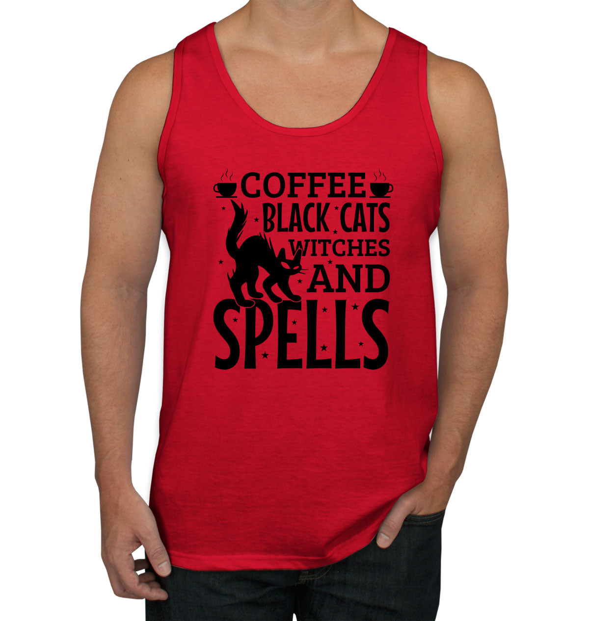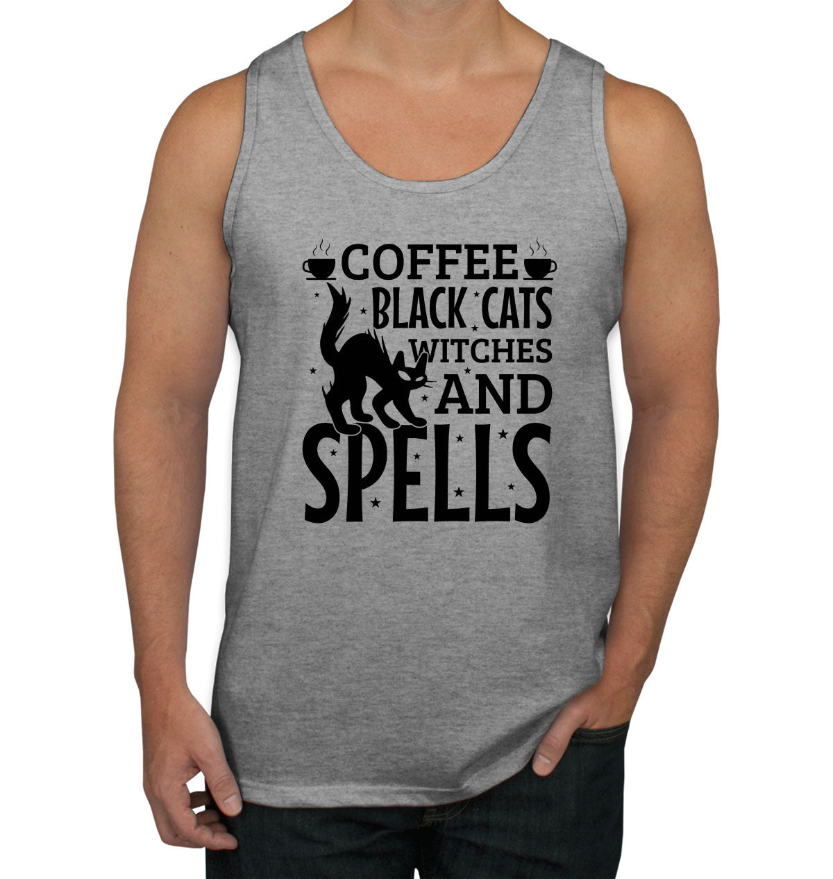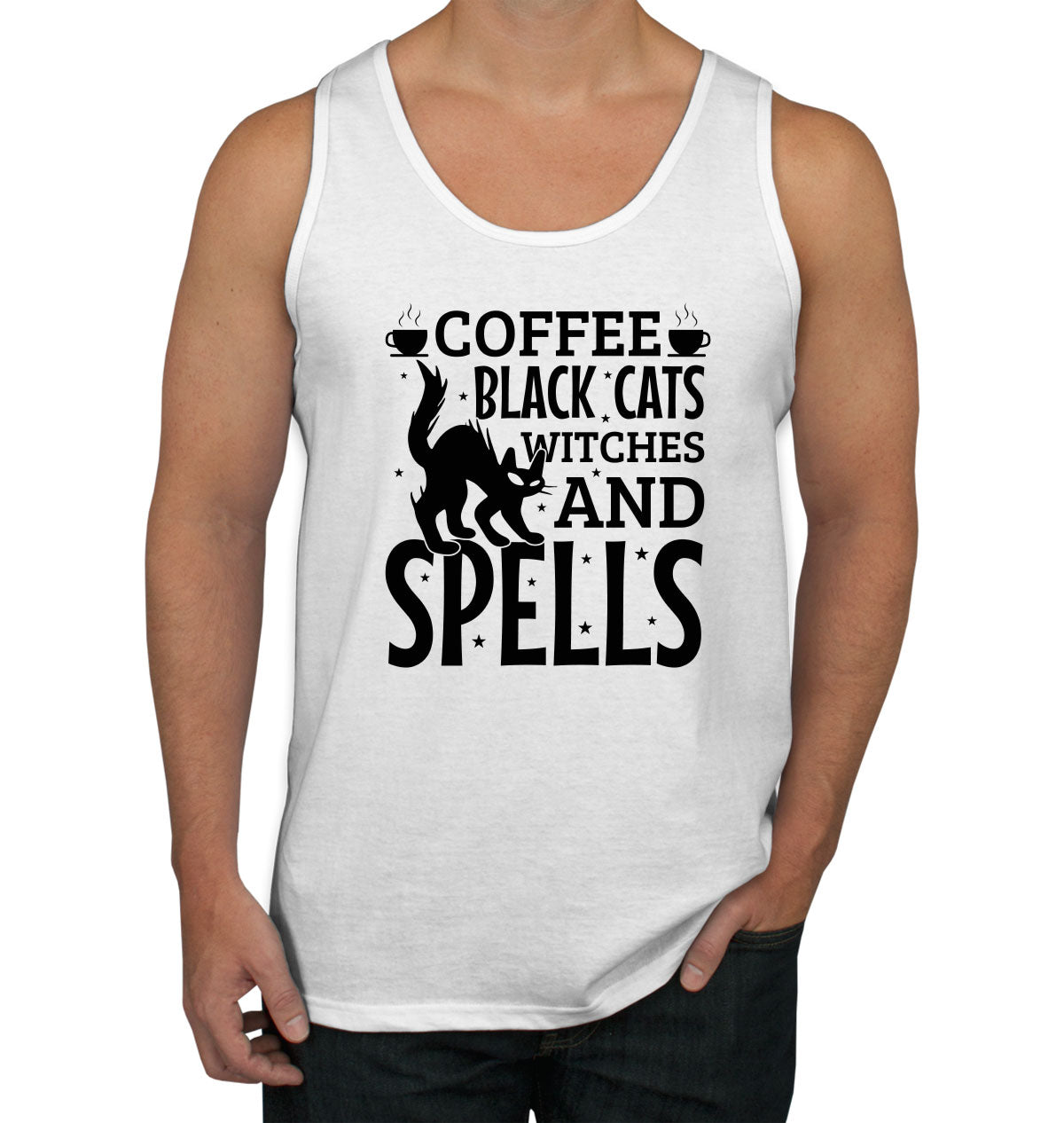 Coffee Black Cats Witches And Spells Halloween Men's Tank Top