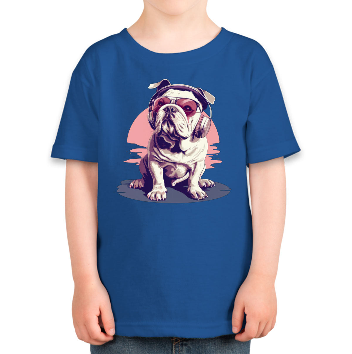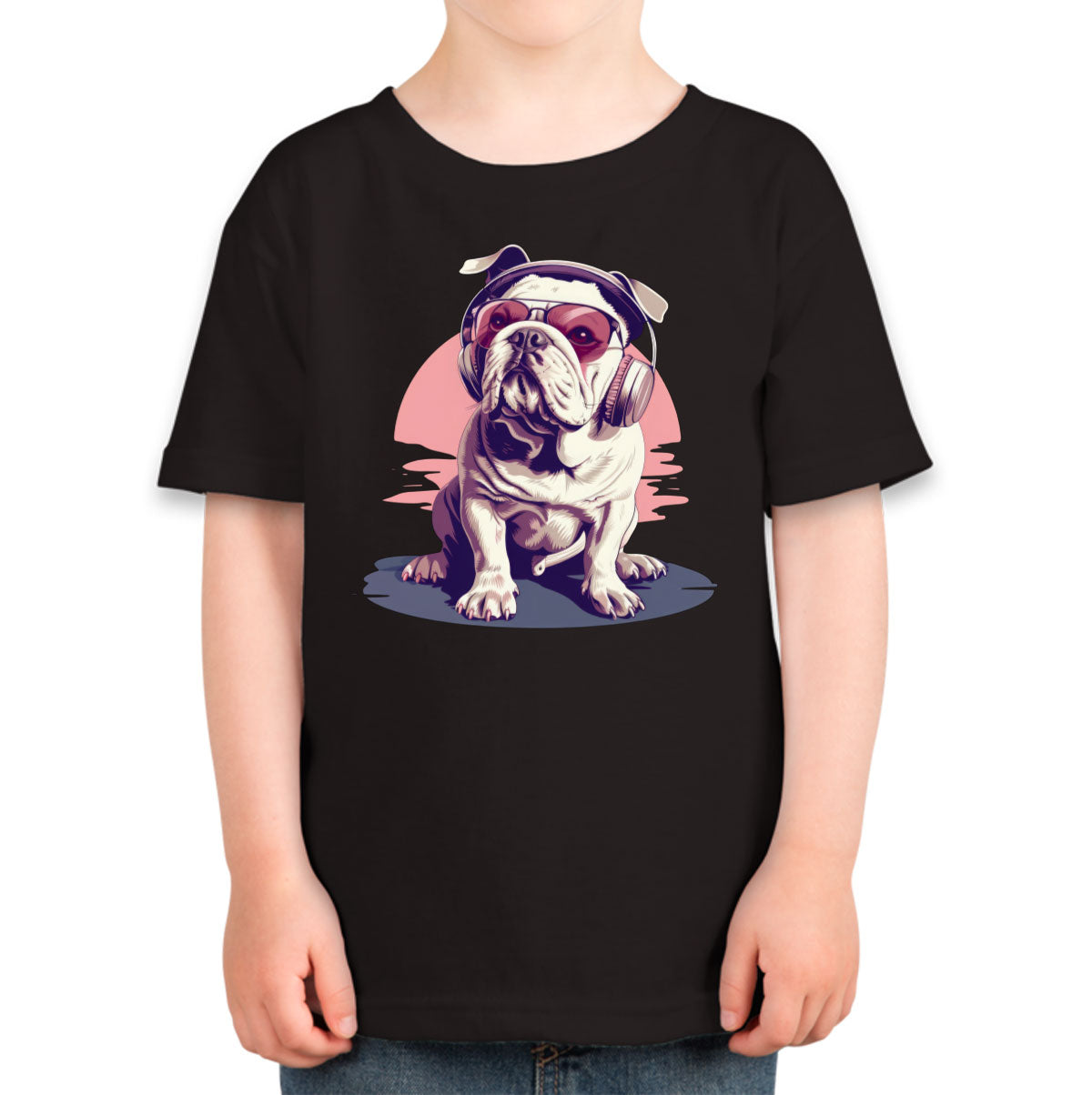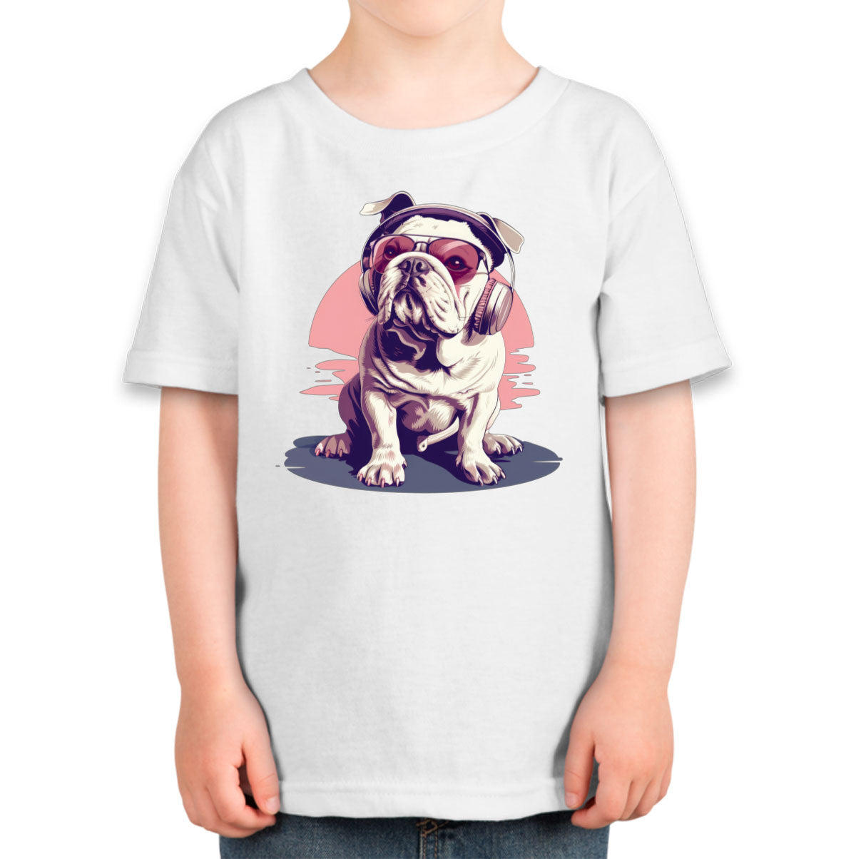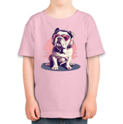 Vintage Bulldog With Headphone And Sunglasses Toddler T-shirt