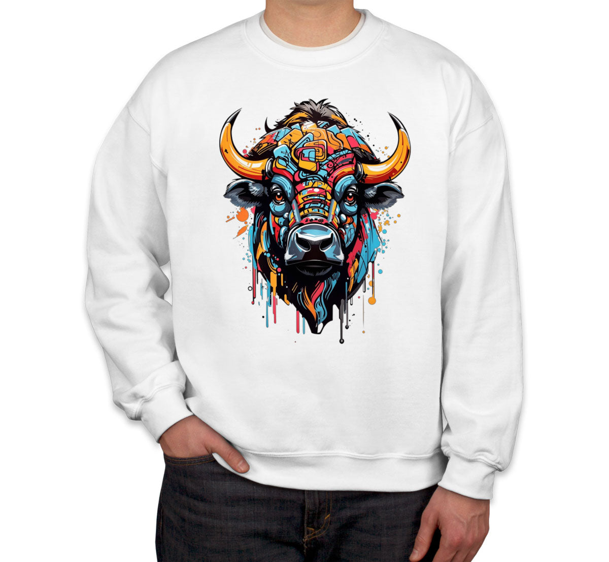Illustration Colorful Bull head Unisex Sweatshirt