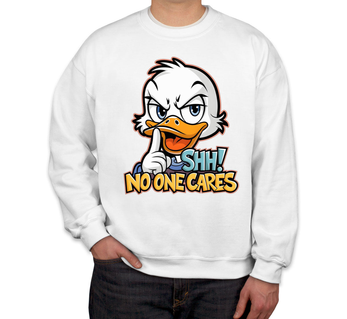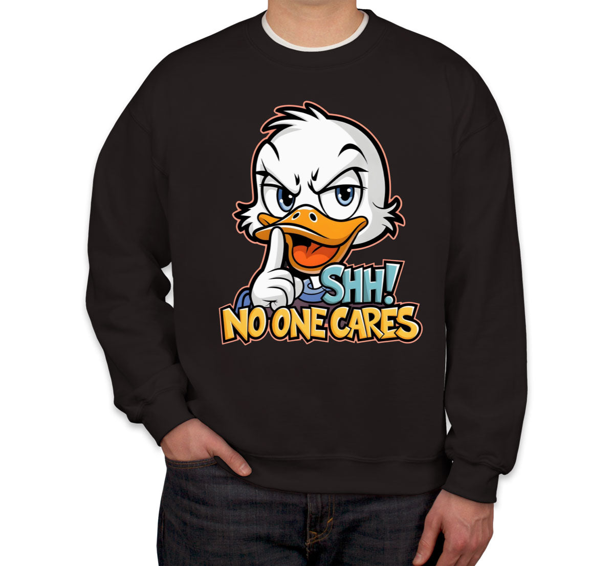 Shh No One Cares Sarcastic Duck Unisex Sweatshirt
