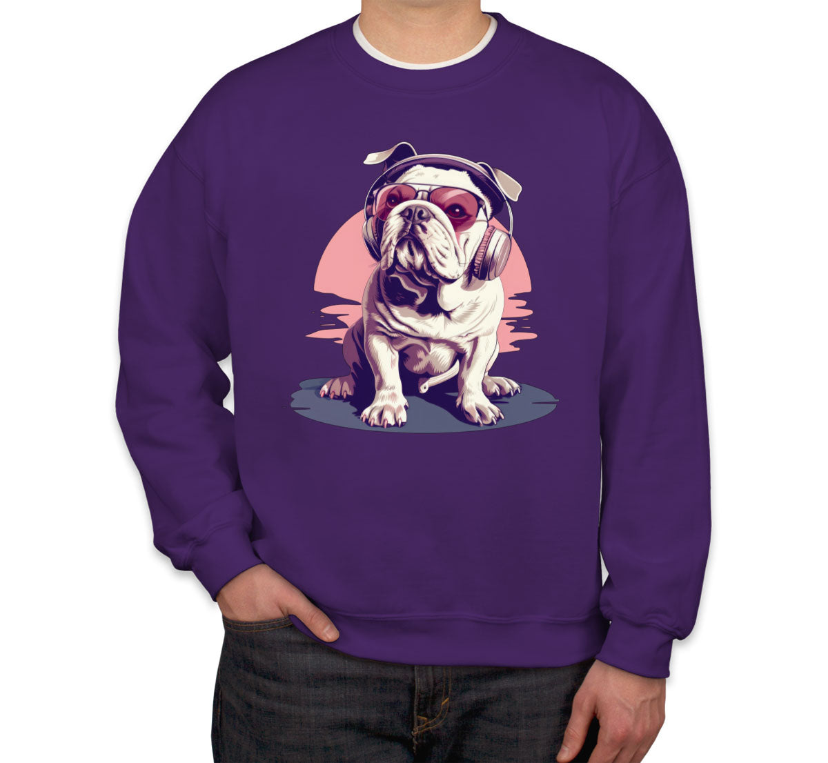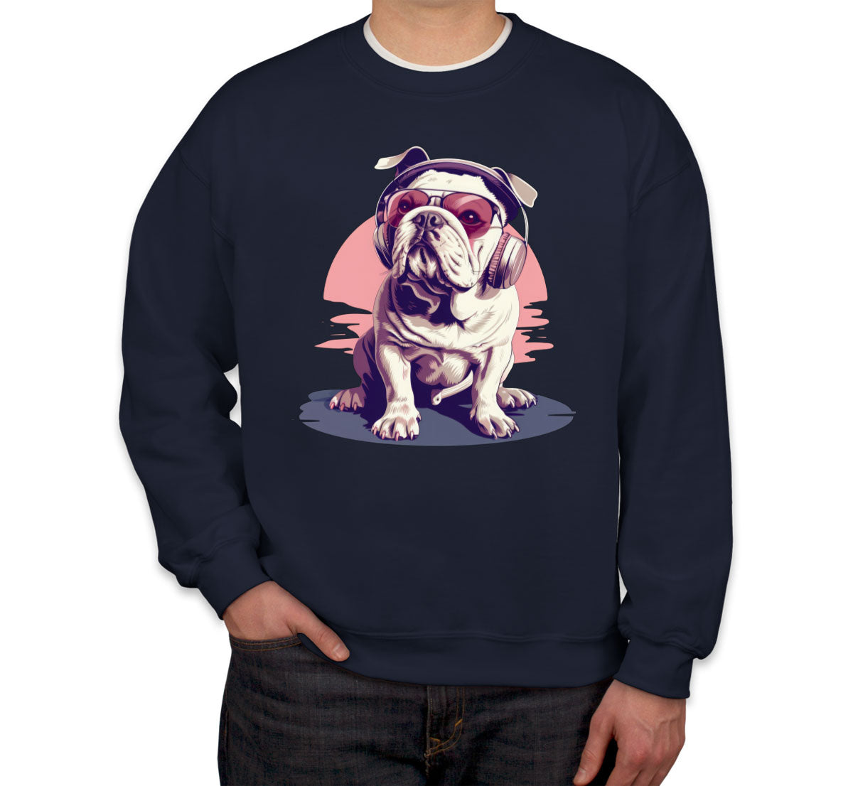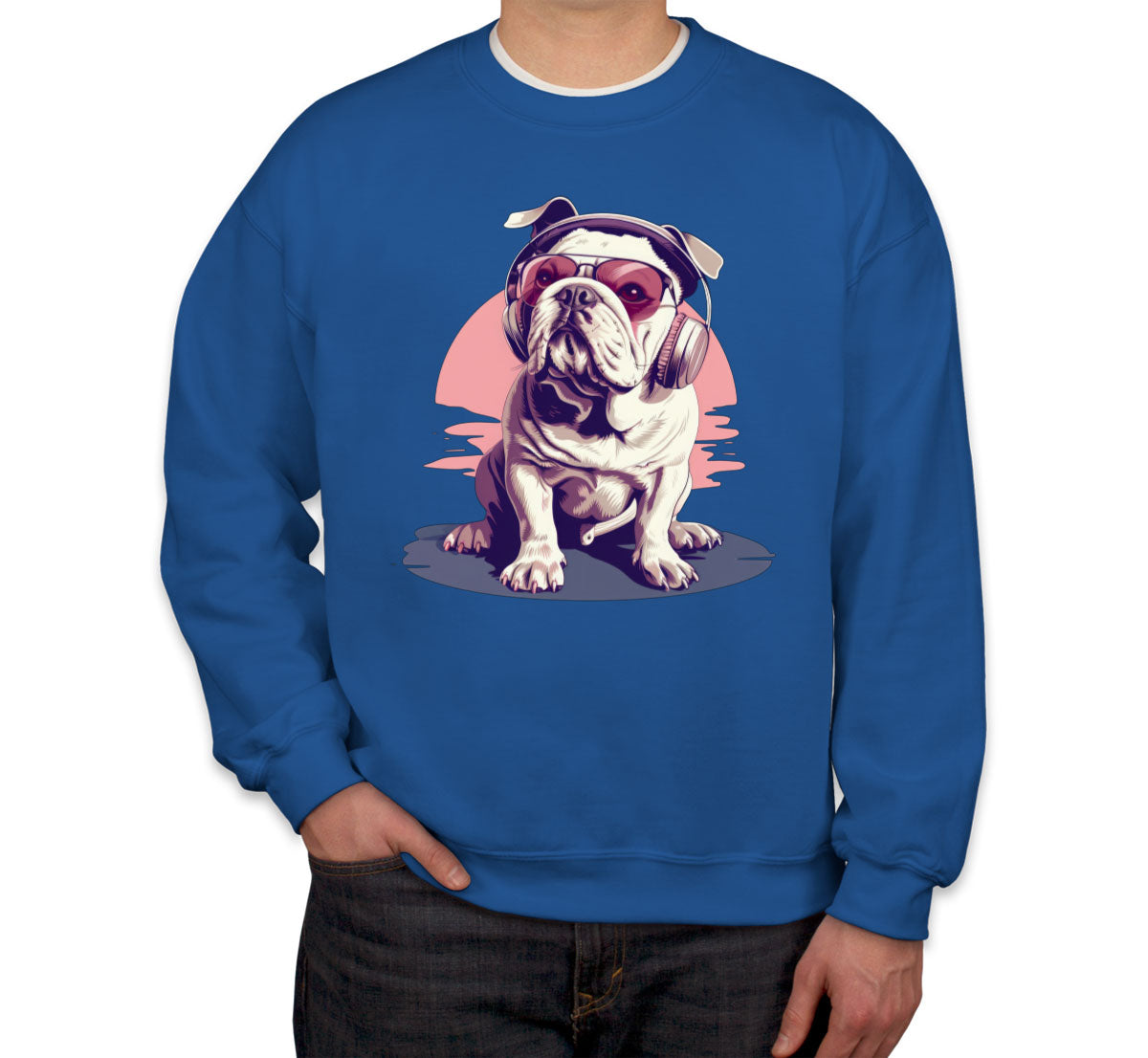 Vintage Bulldog With Headphone And Sunglasses Unisex Sweatshirt