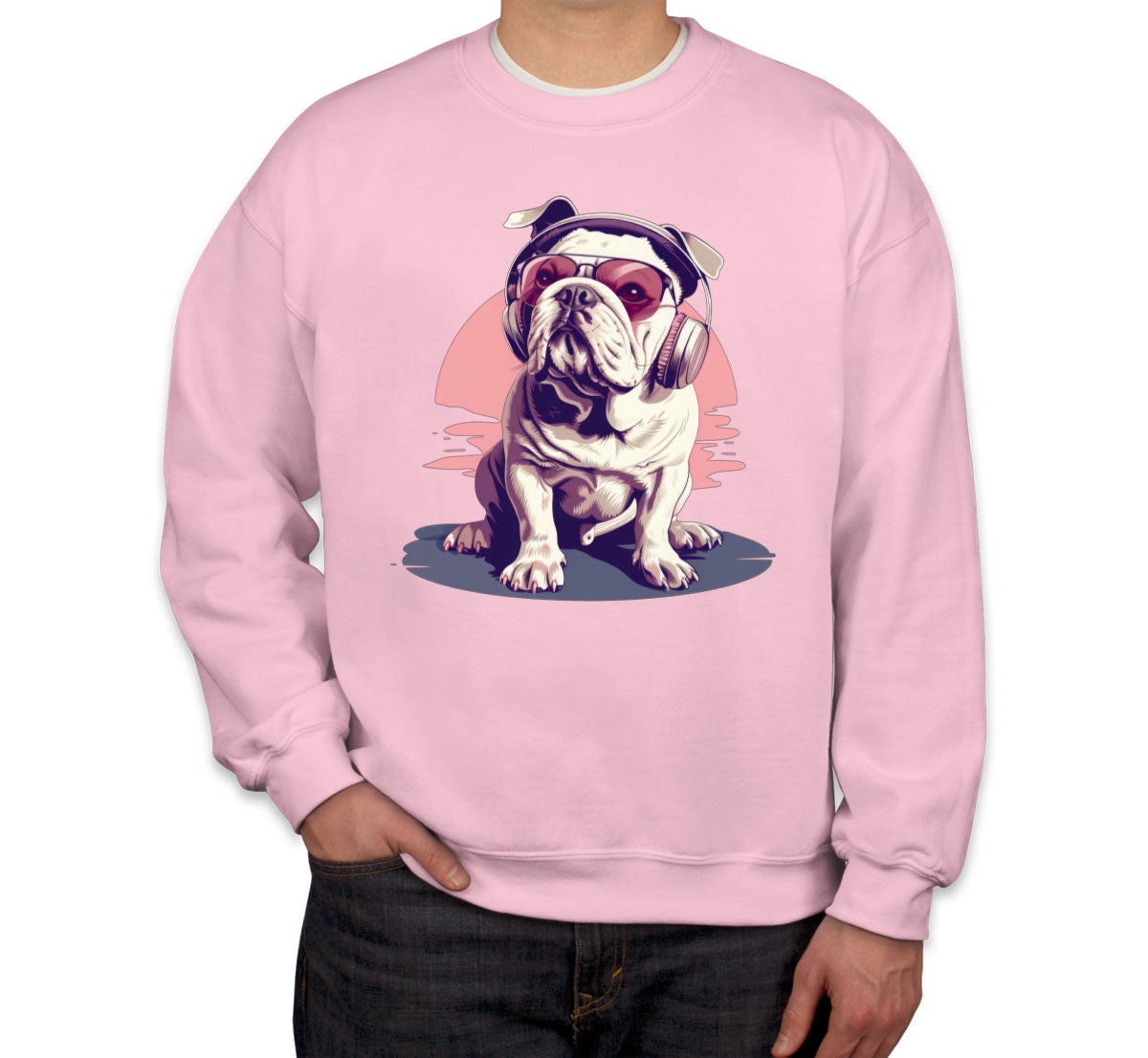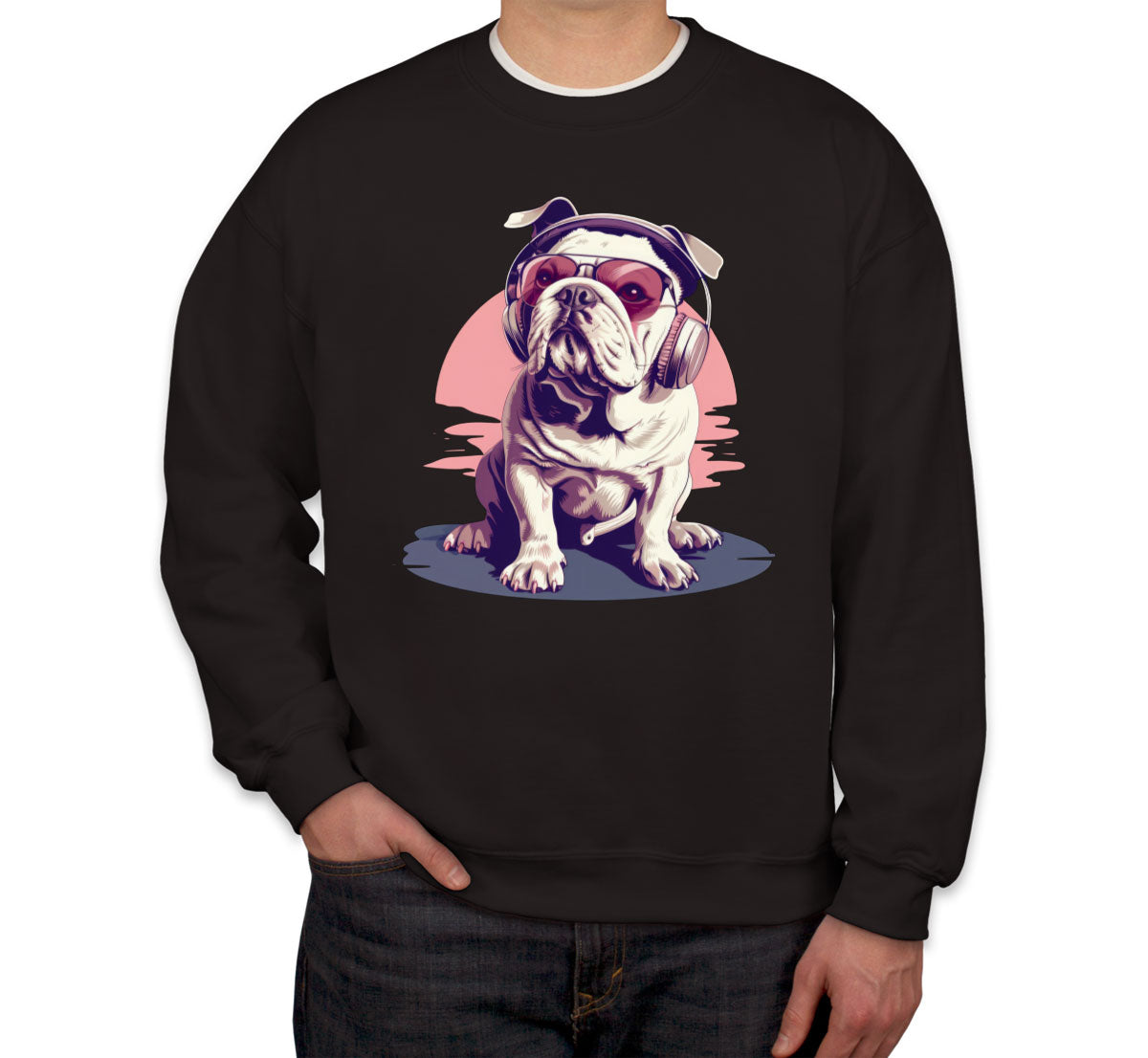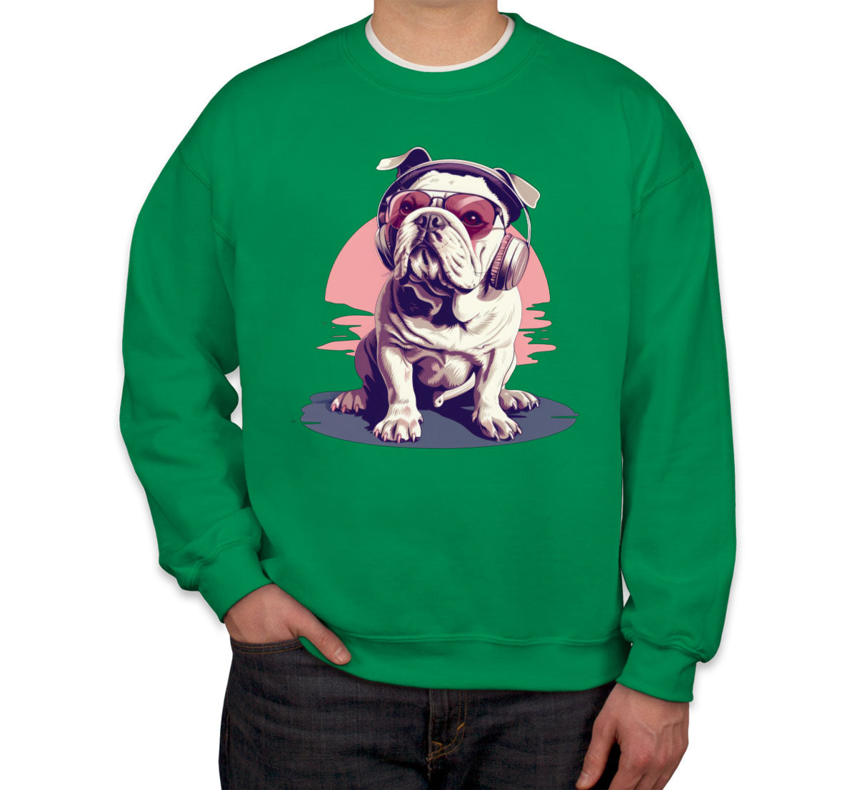 Vintage Bulldog With Headphone And Sunglasses Unisex Sweatshirt
