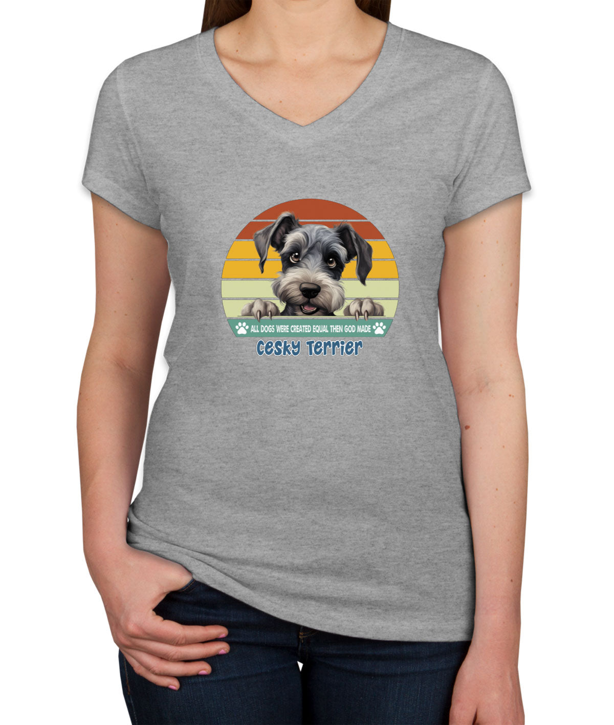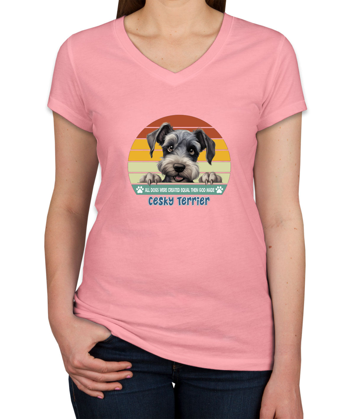 All Dogs Were Created Equal Cesky Terrier Women's V Neck T-shirt