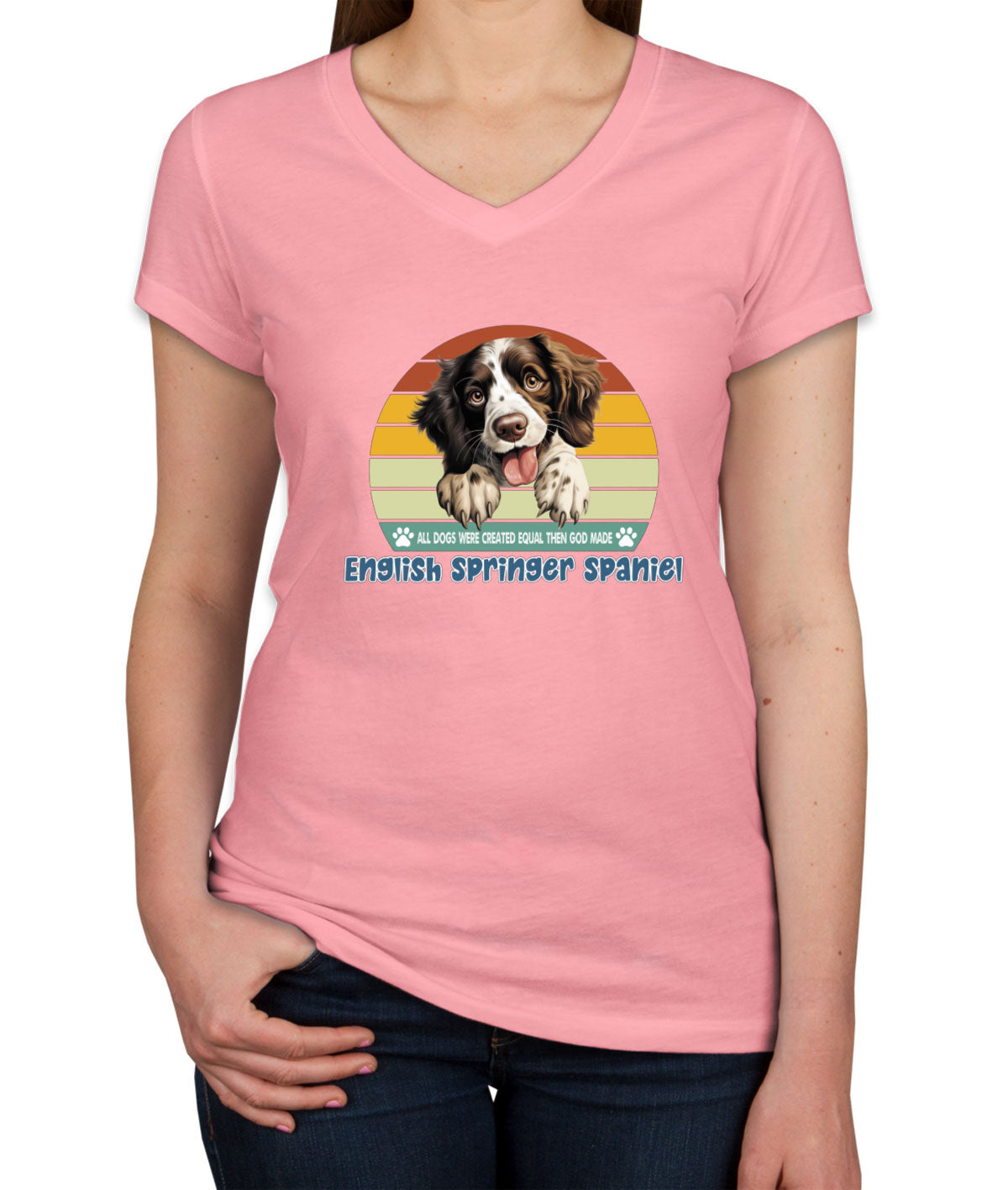 All Dogs Were Created Equal English Springer Spaniel Women's V Neck T-shirt