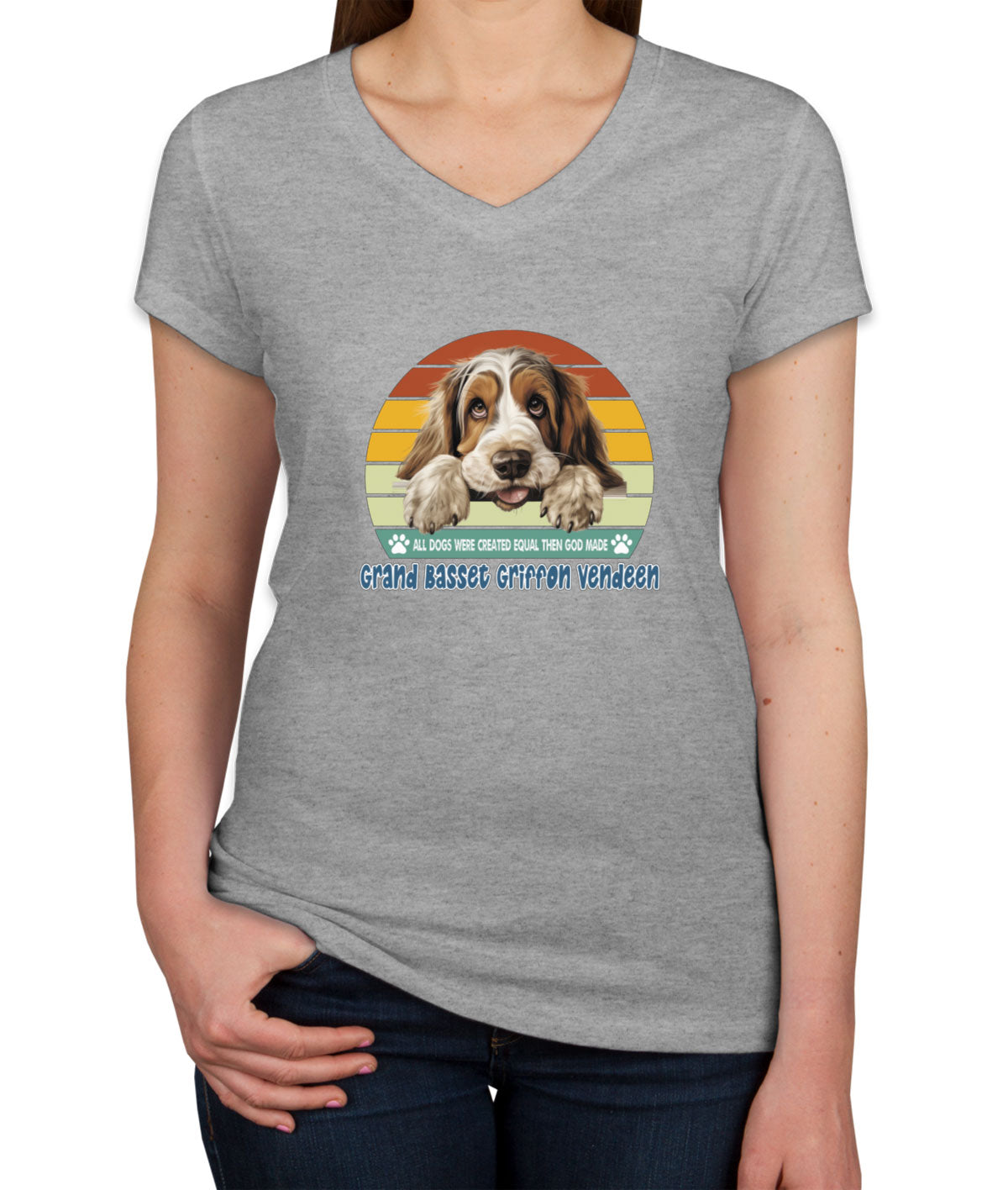 All Dogs Were Created Equal Grand Basset Griffon Vendeen Women's V Neck T-shirt