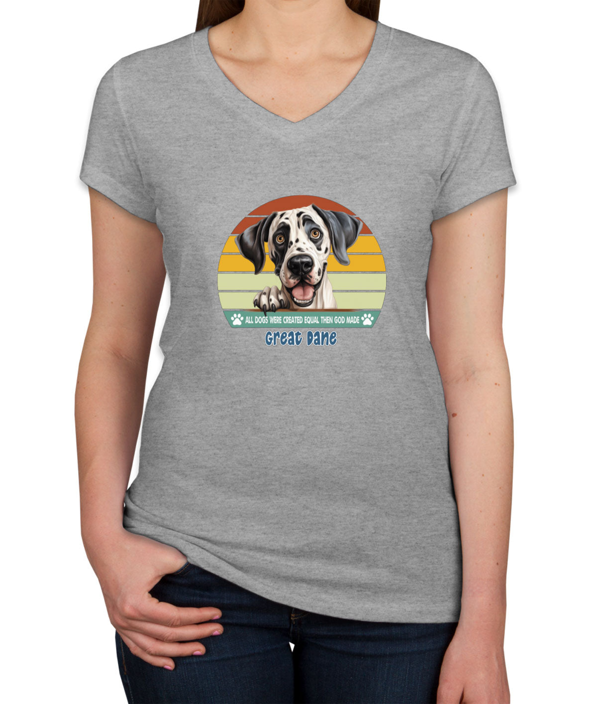 All Dogs Were Created Equal Great Dane Women's V Neck T-shirt