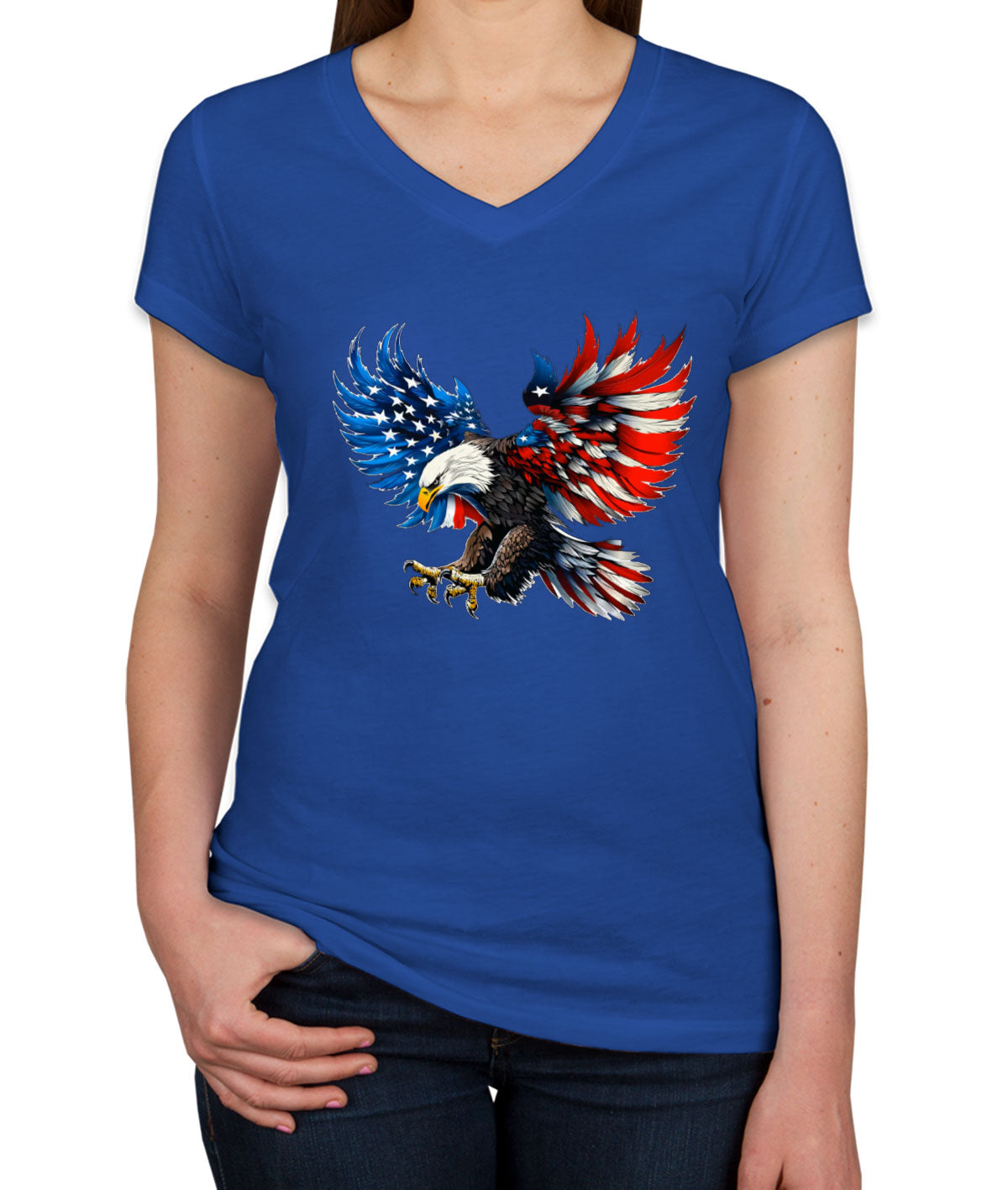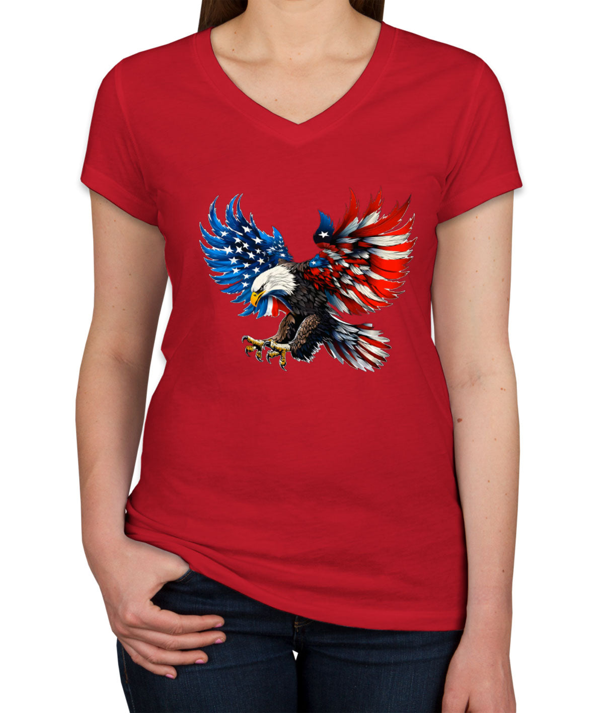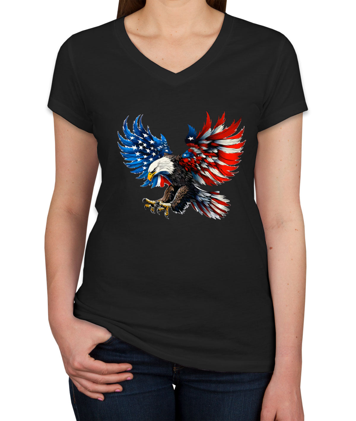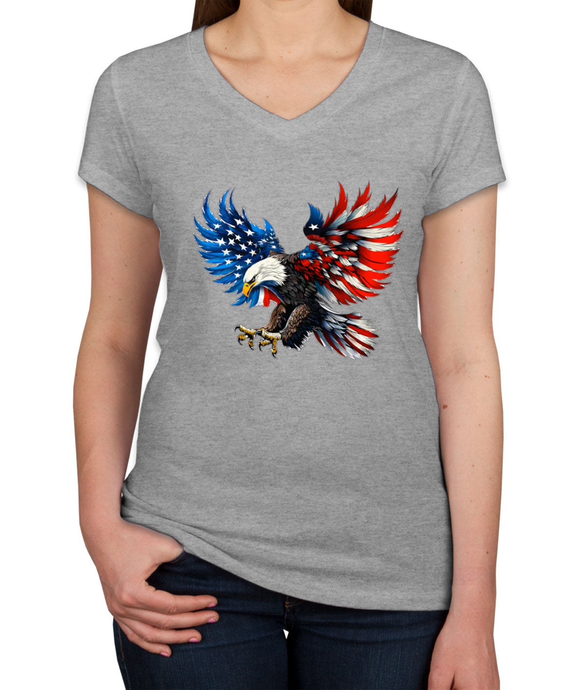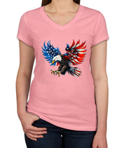 American Eagle Flag Independence Day Patriotic Women's V Neck T-shirt