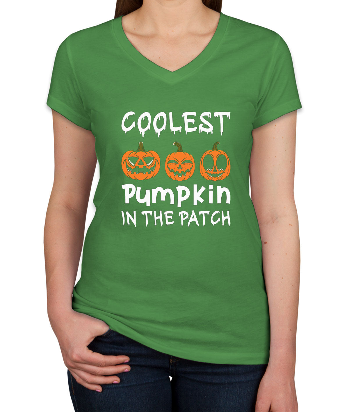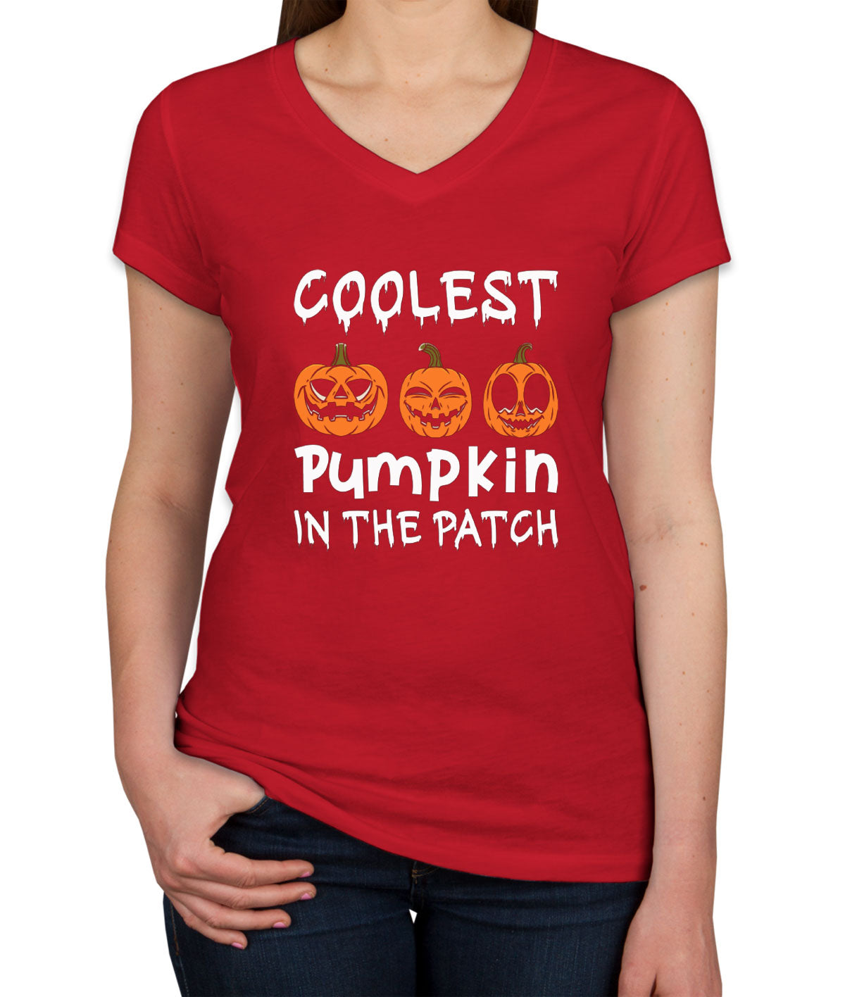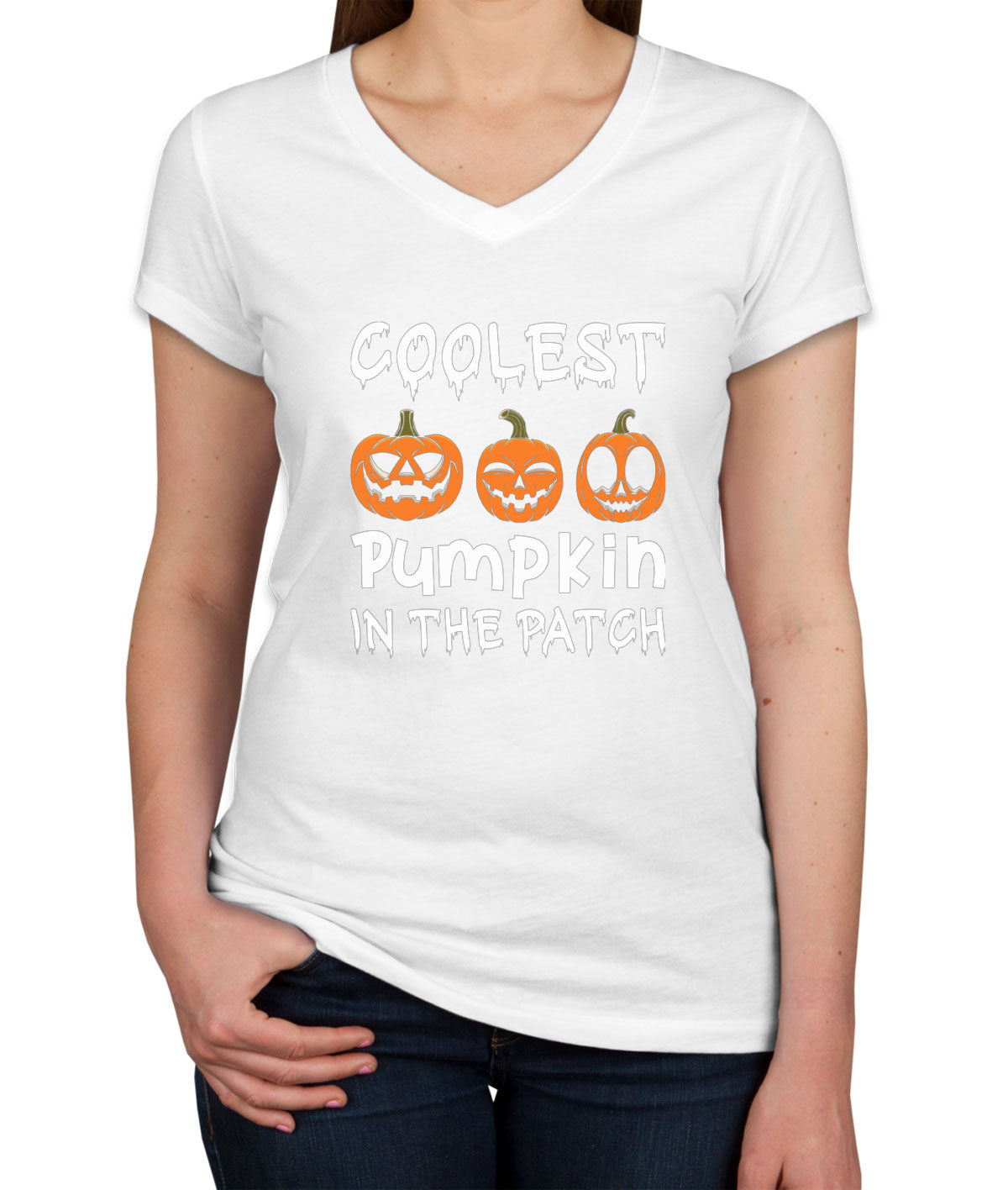 Coolest Pumpkin In The Pitch Halloween Women's V Neck T-shirt
