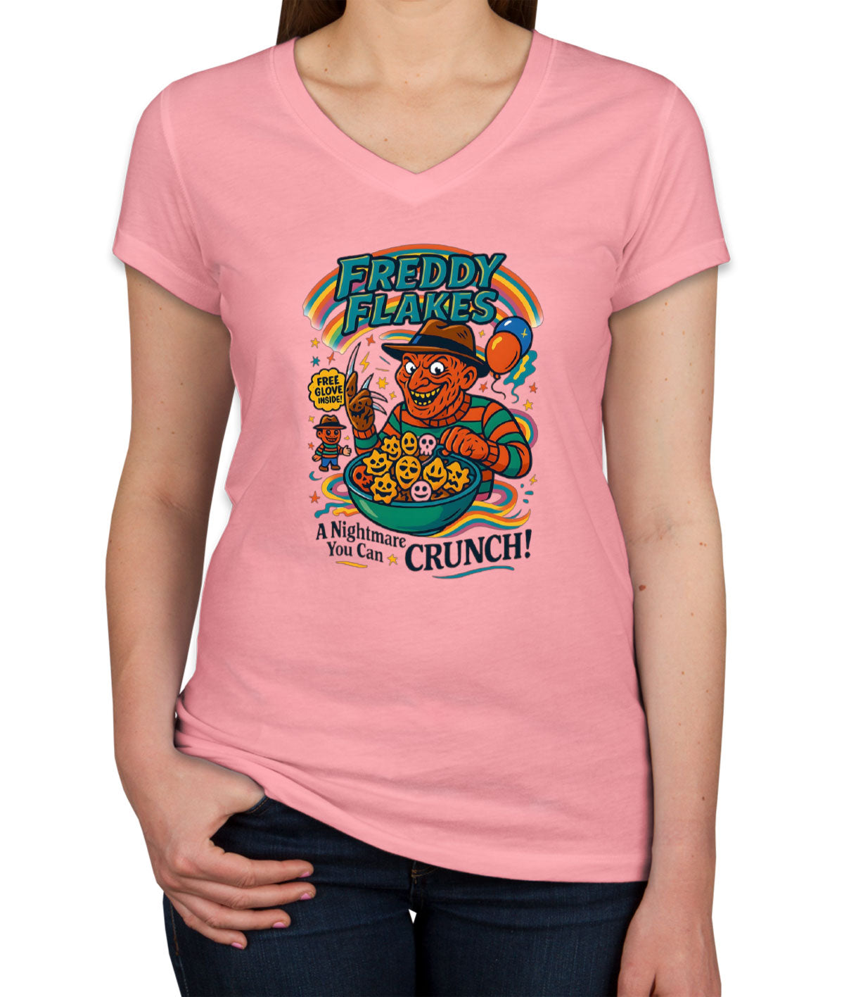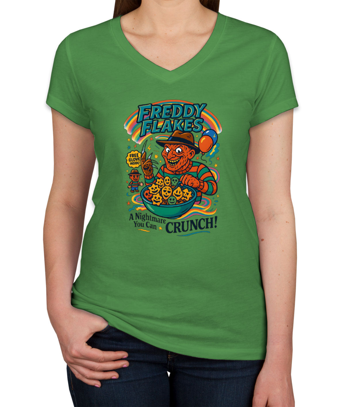 Freddy Flakes Halloween Women's V Neck T-shirt