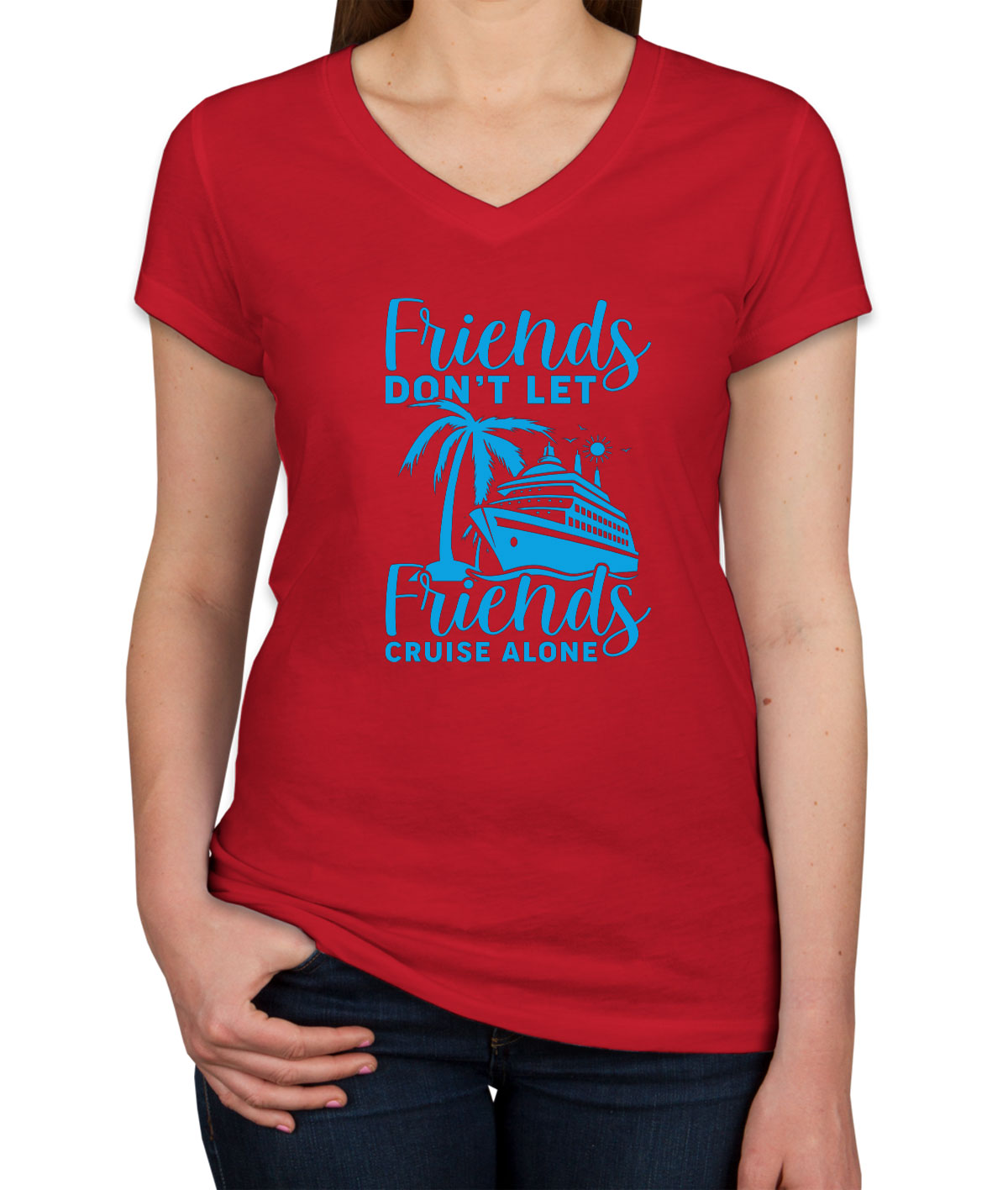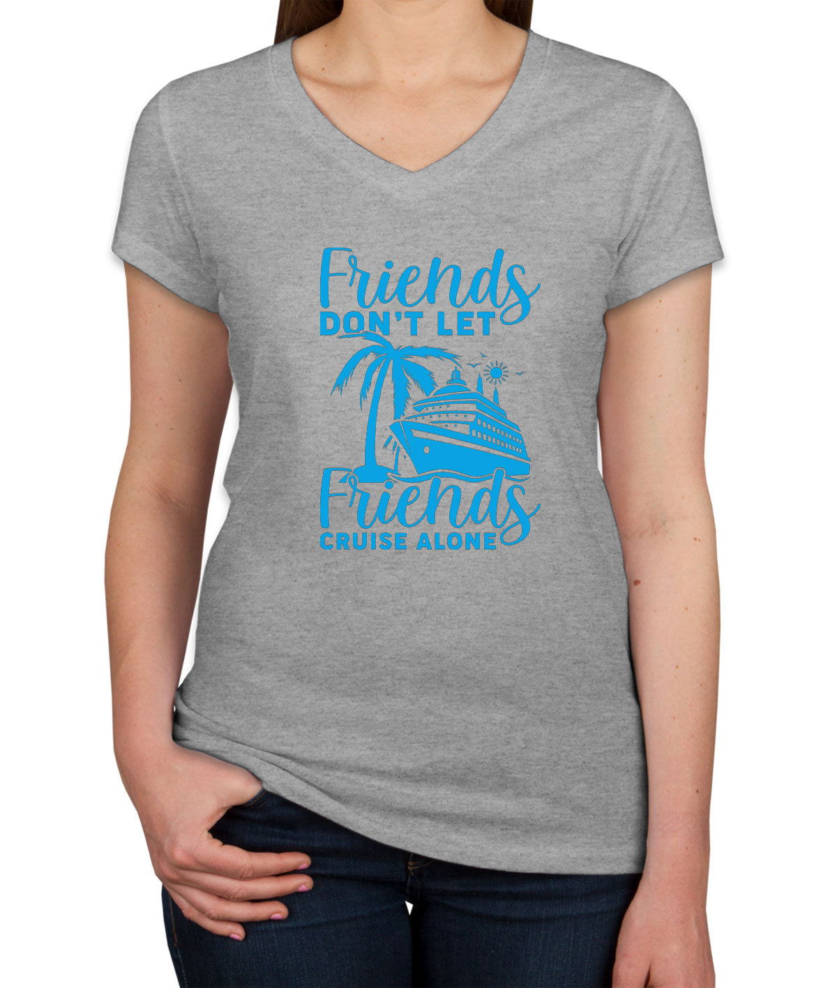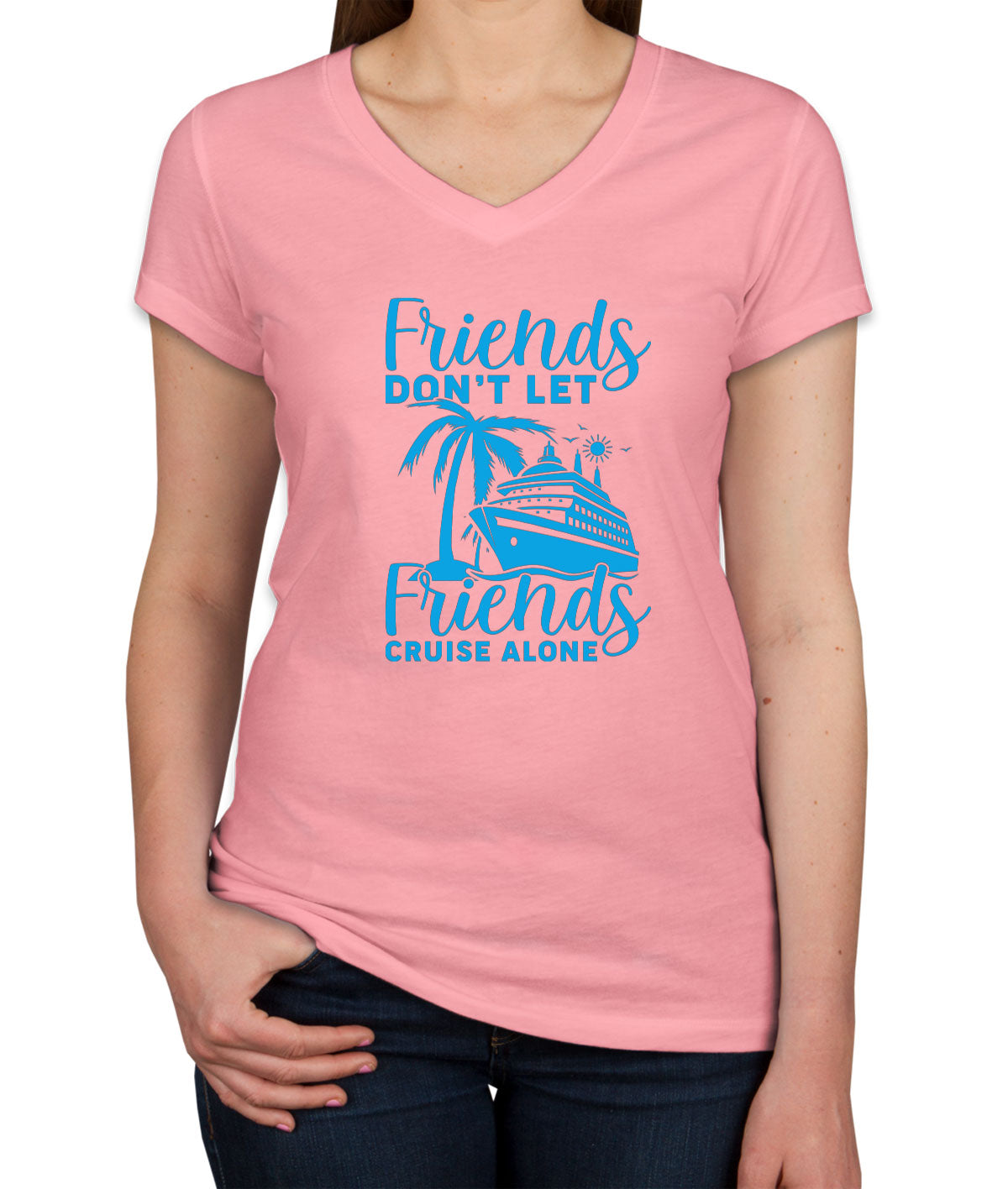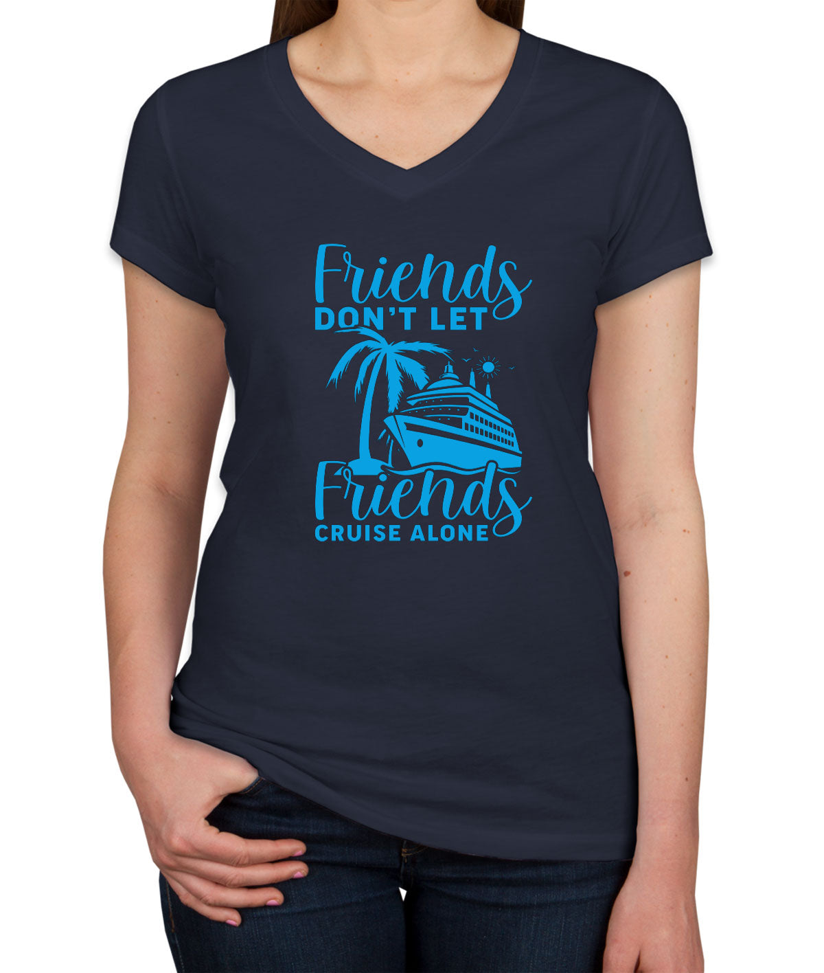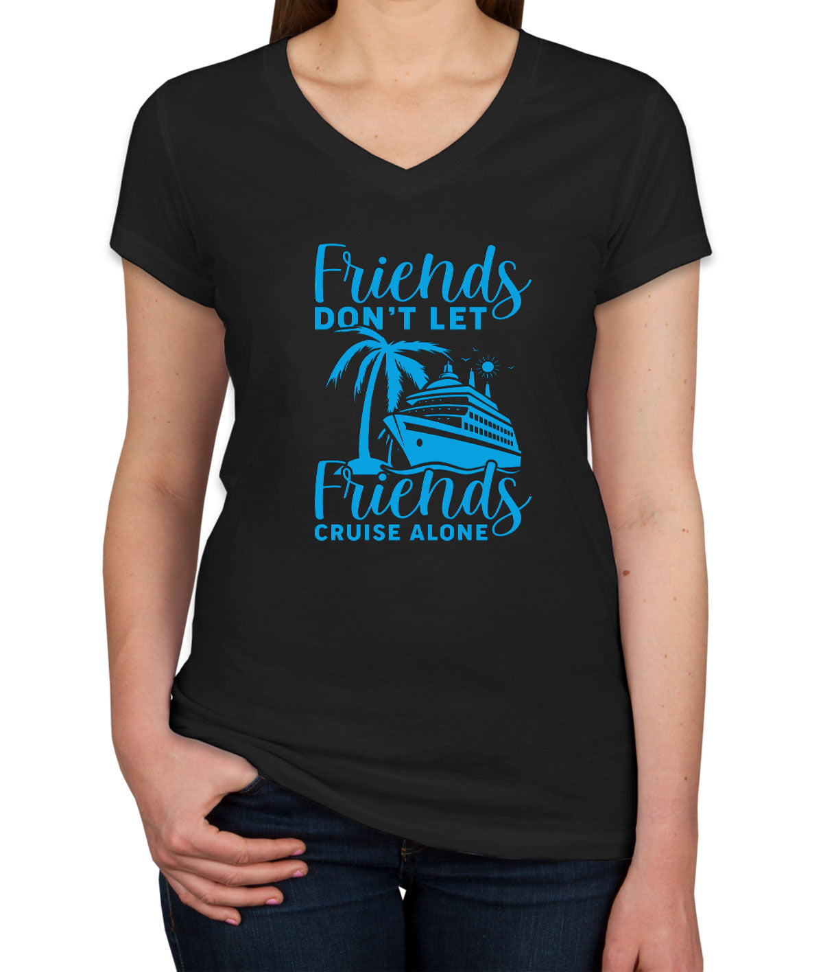 Friends Don't Let Friends Crusie Alone Women's V Neck T-shirt