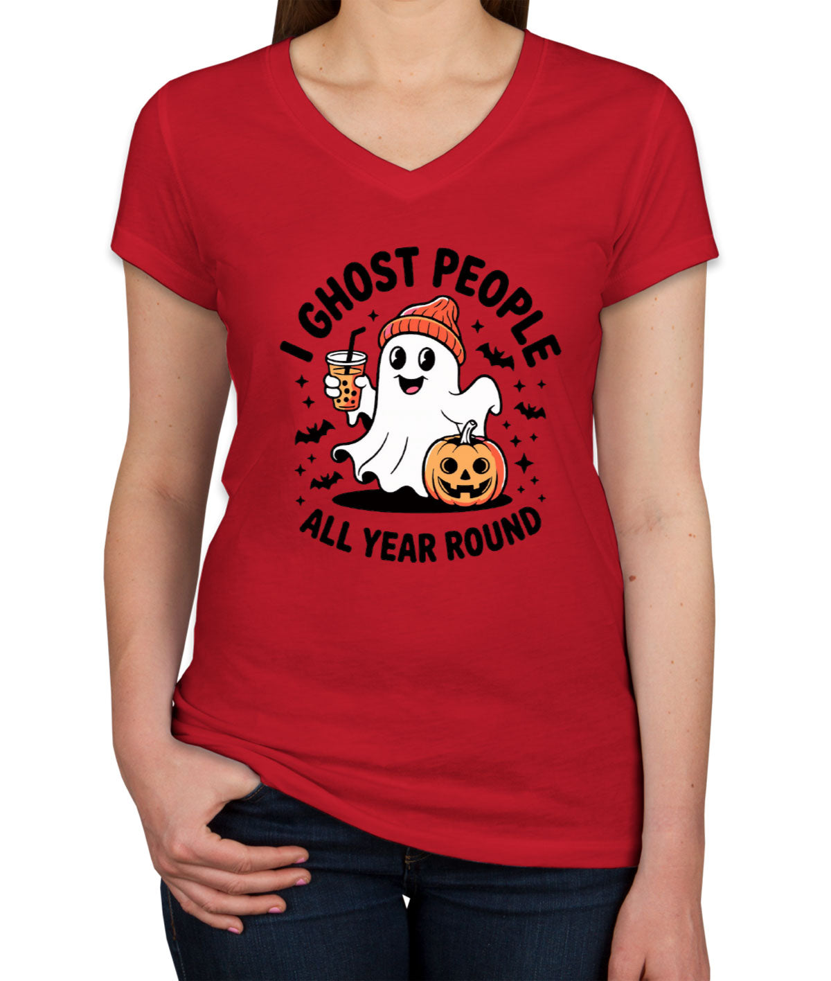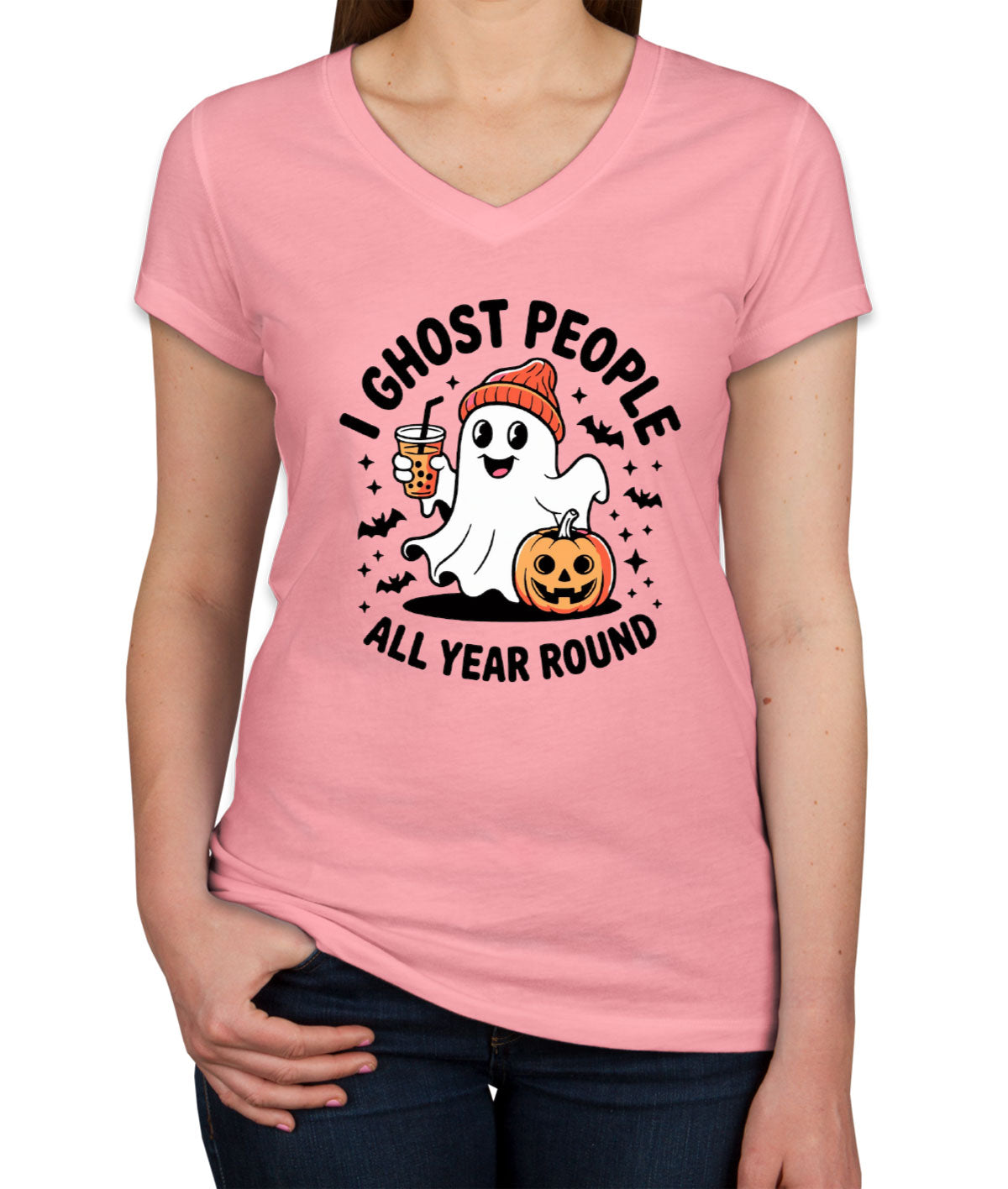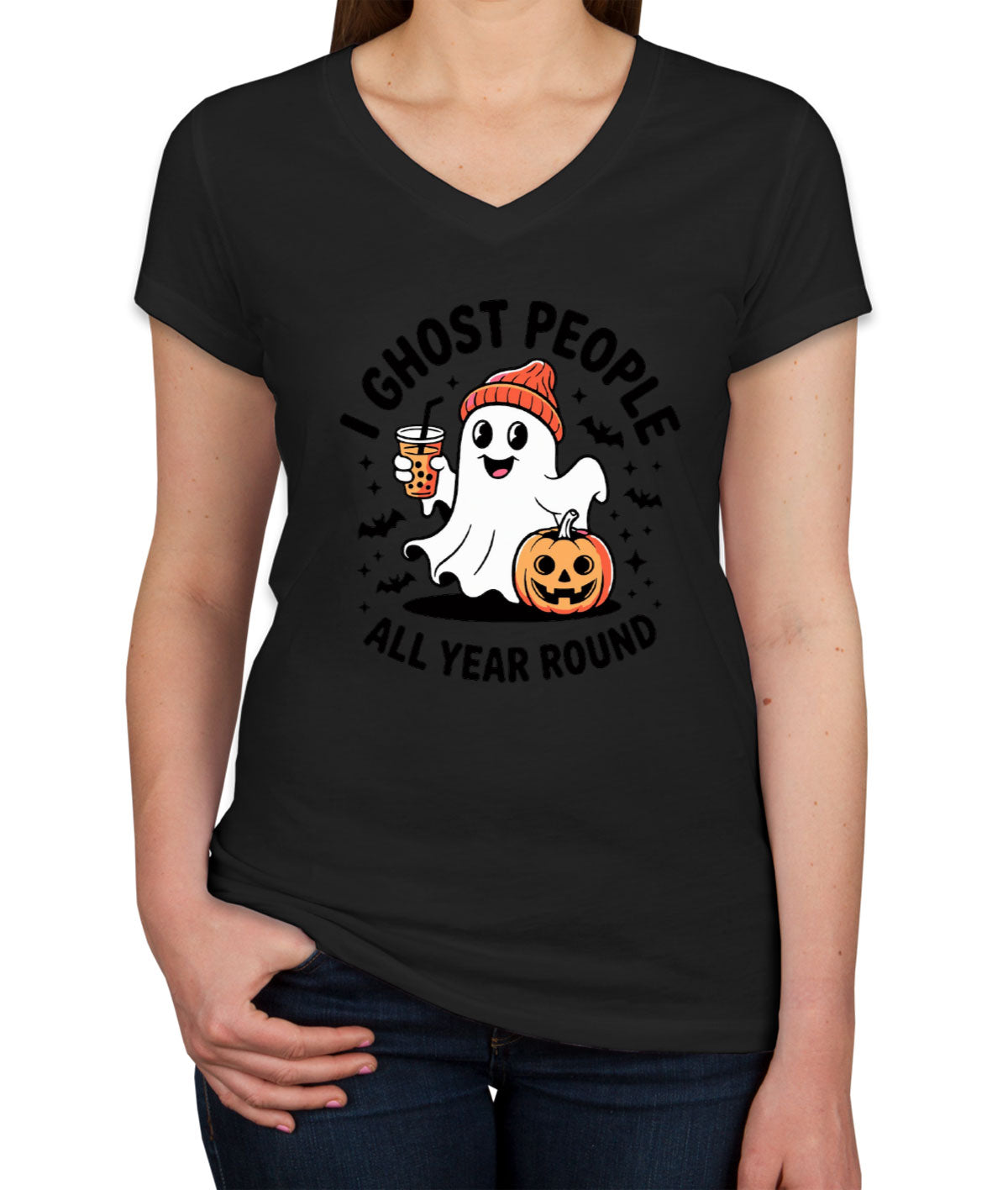 I Ghost People All Year Round Halloween Women's V Neck T-shirt