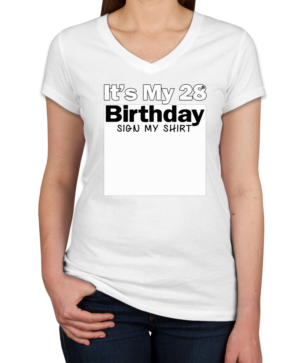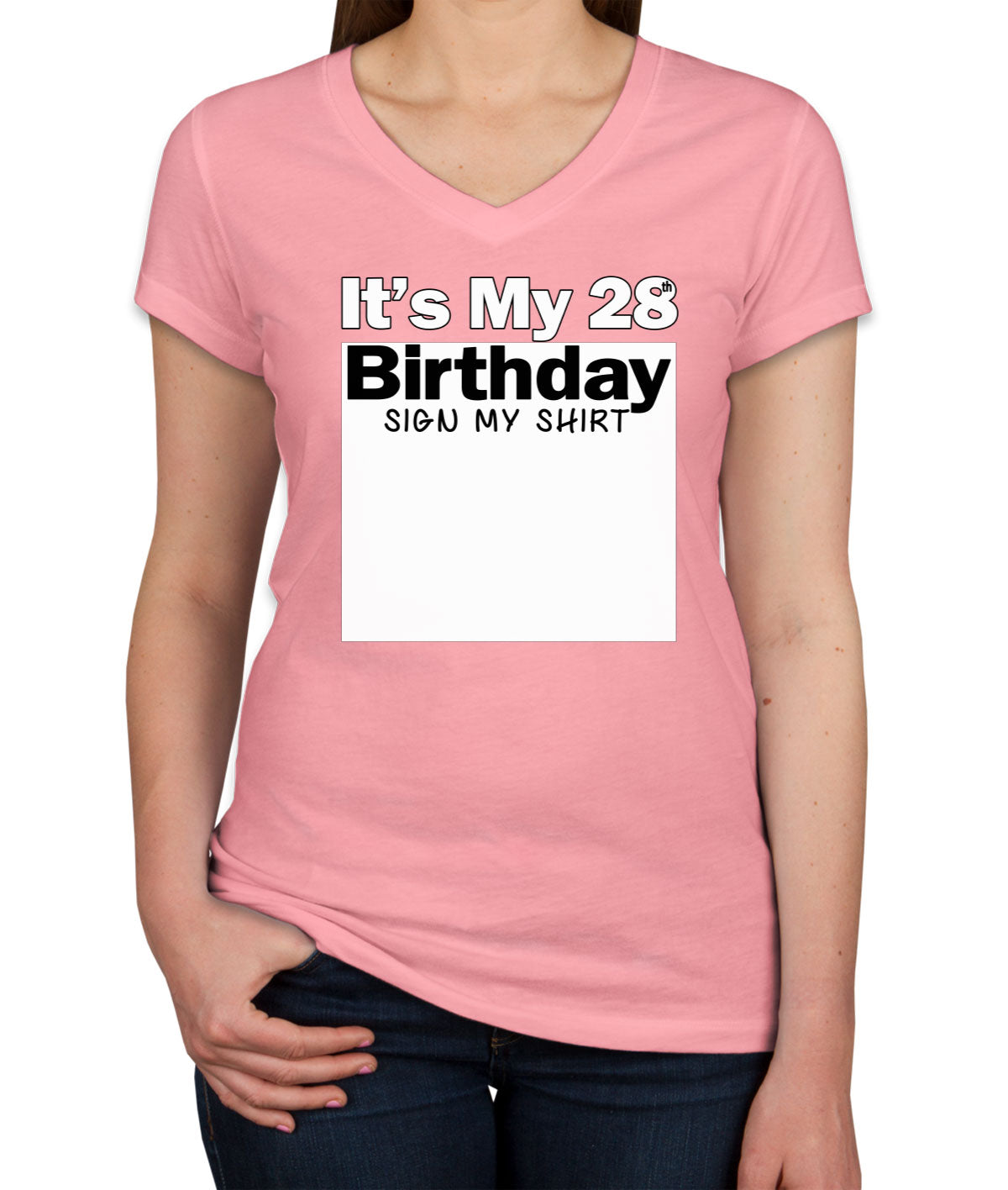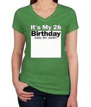 It's My 28th Birthday Sign My Shirt Women's V Neck T-shirt