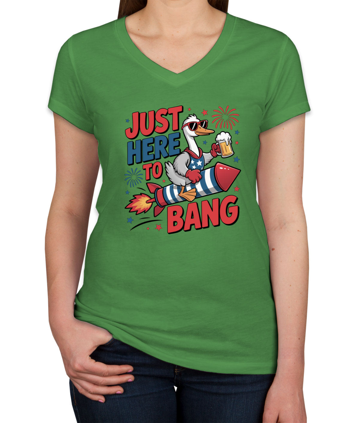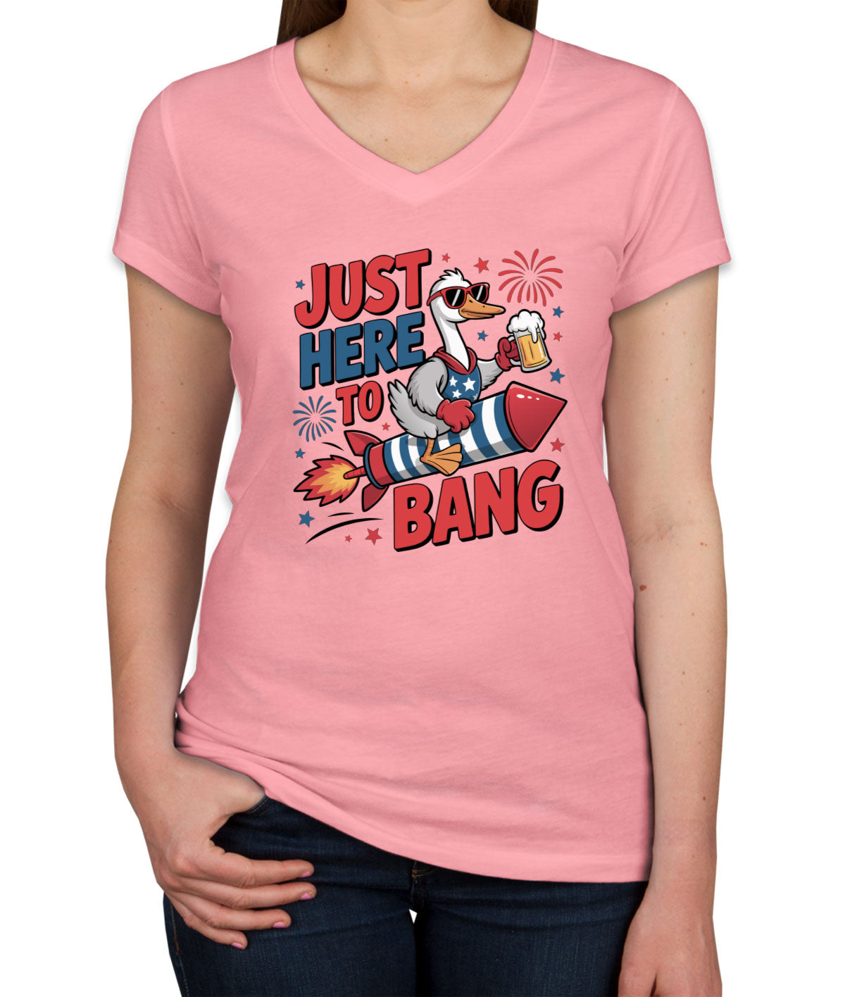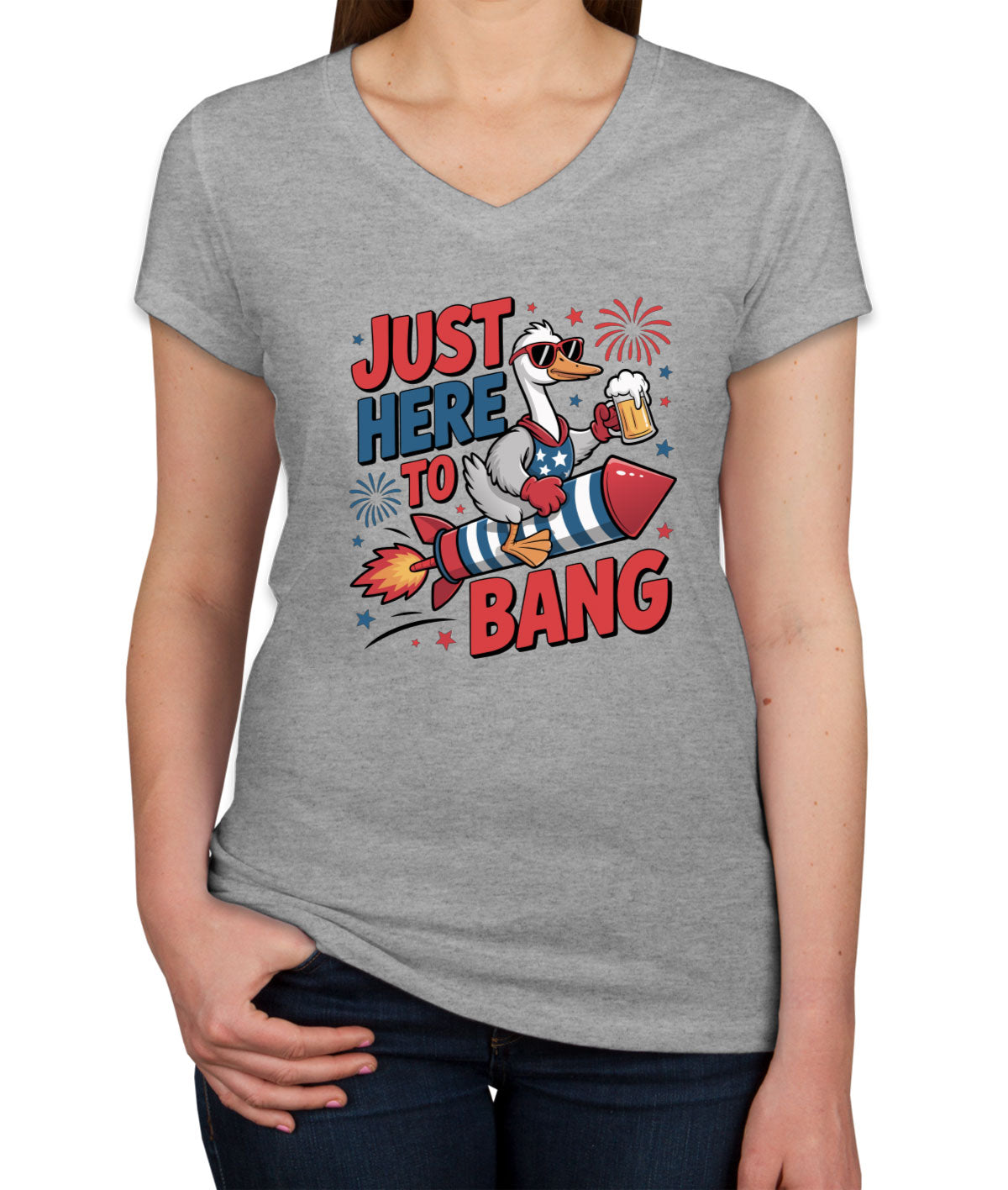 Just Here To Bang Independence Day Patriotic Women's V Neck T-shirt