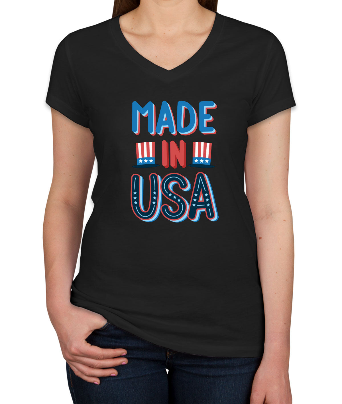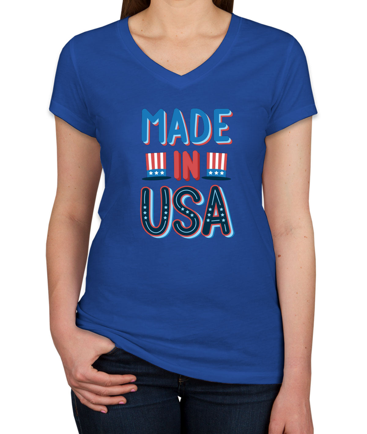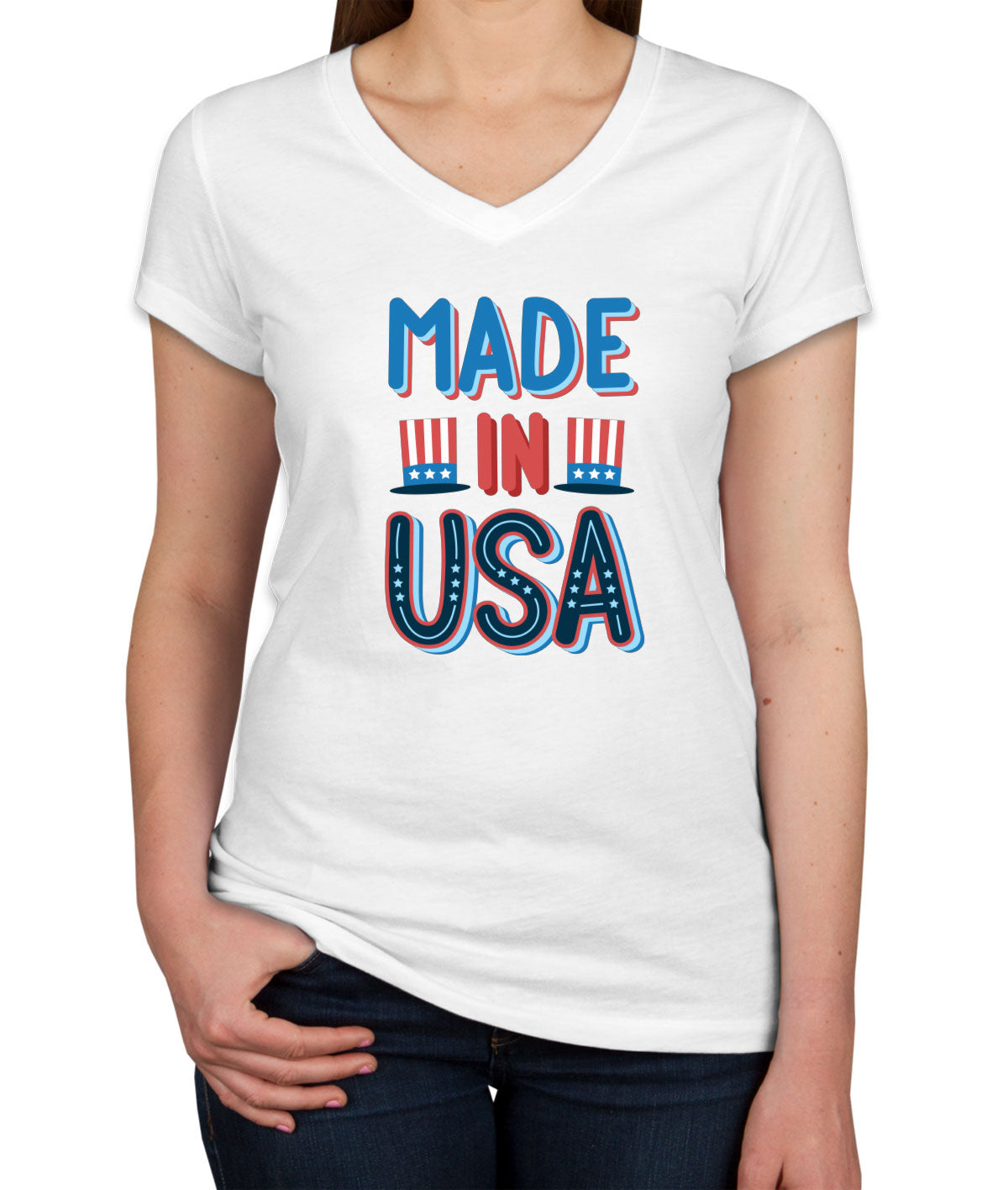 Made In USA Patriotic Women's V Neck T-shirt