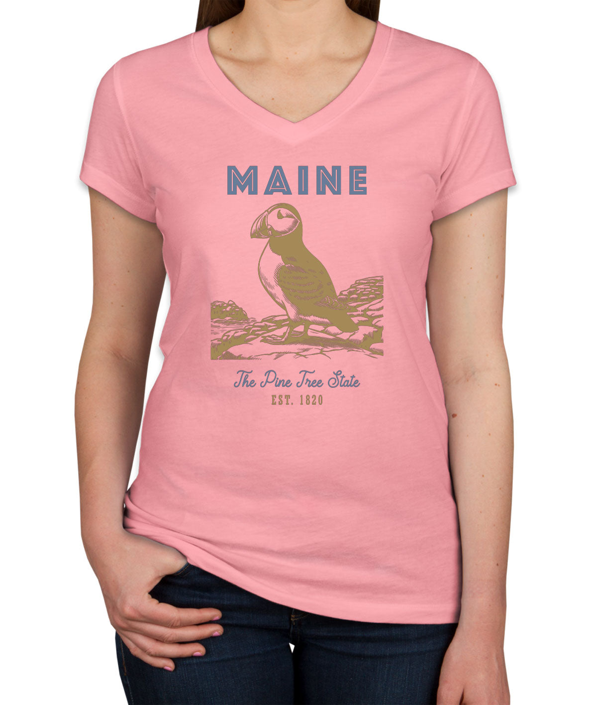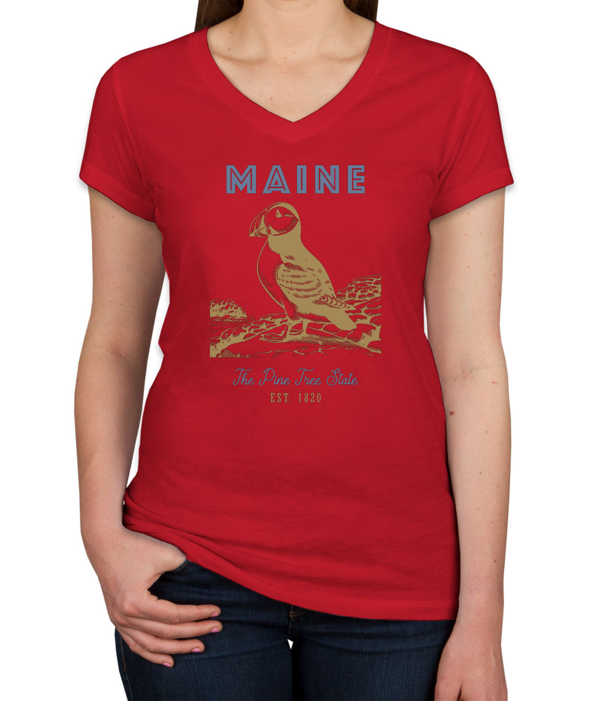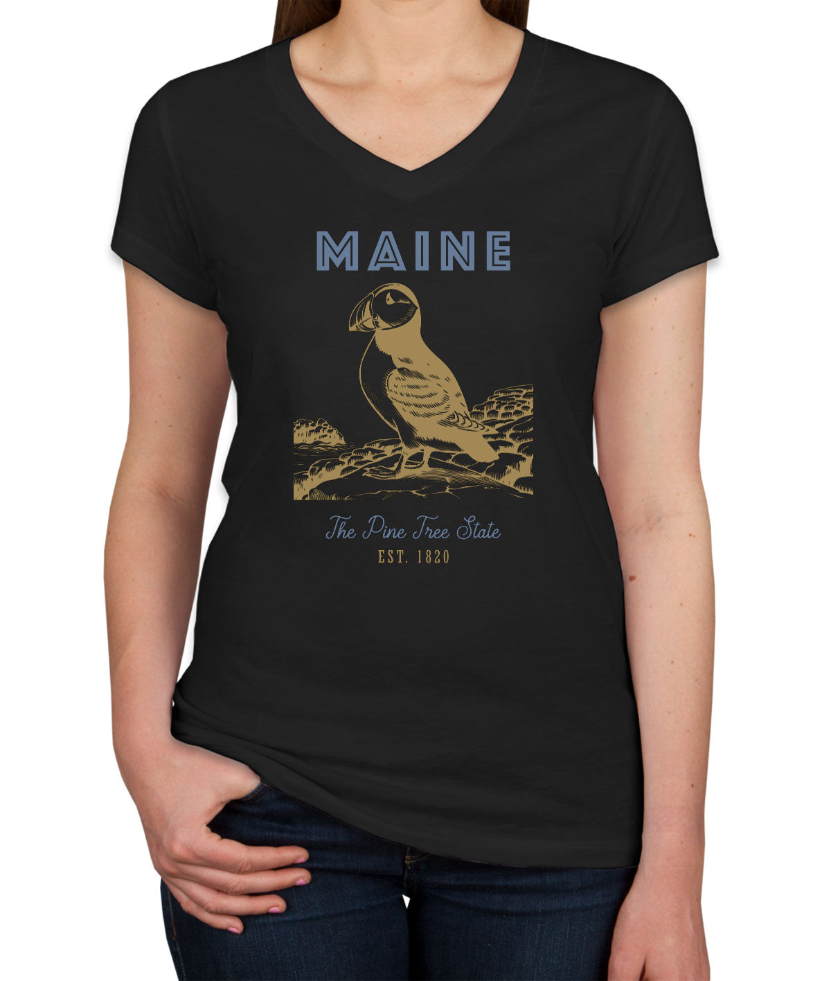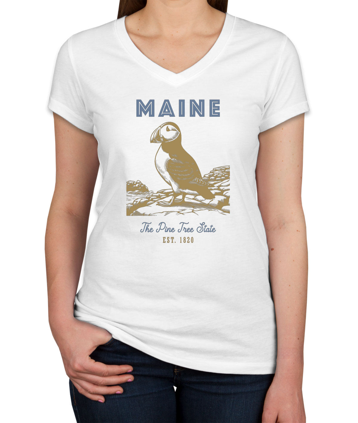 Maine State Vintage Women's V Neck T-shirt