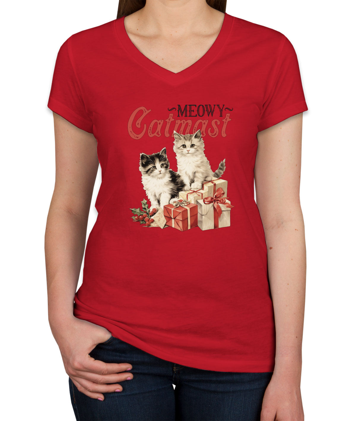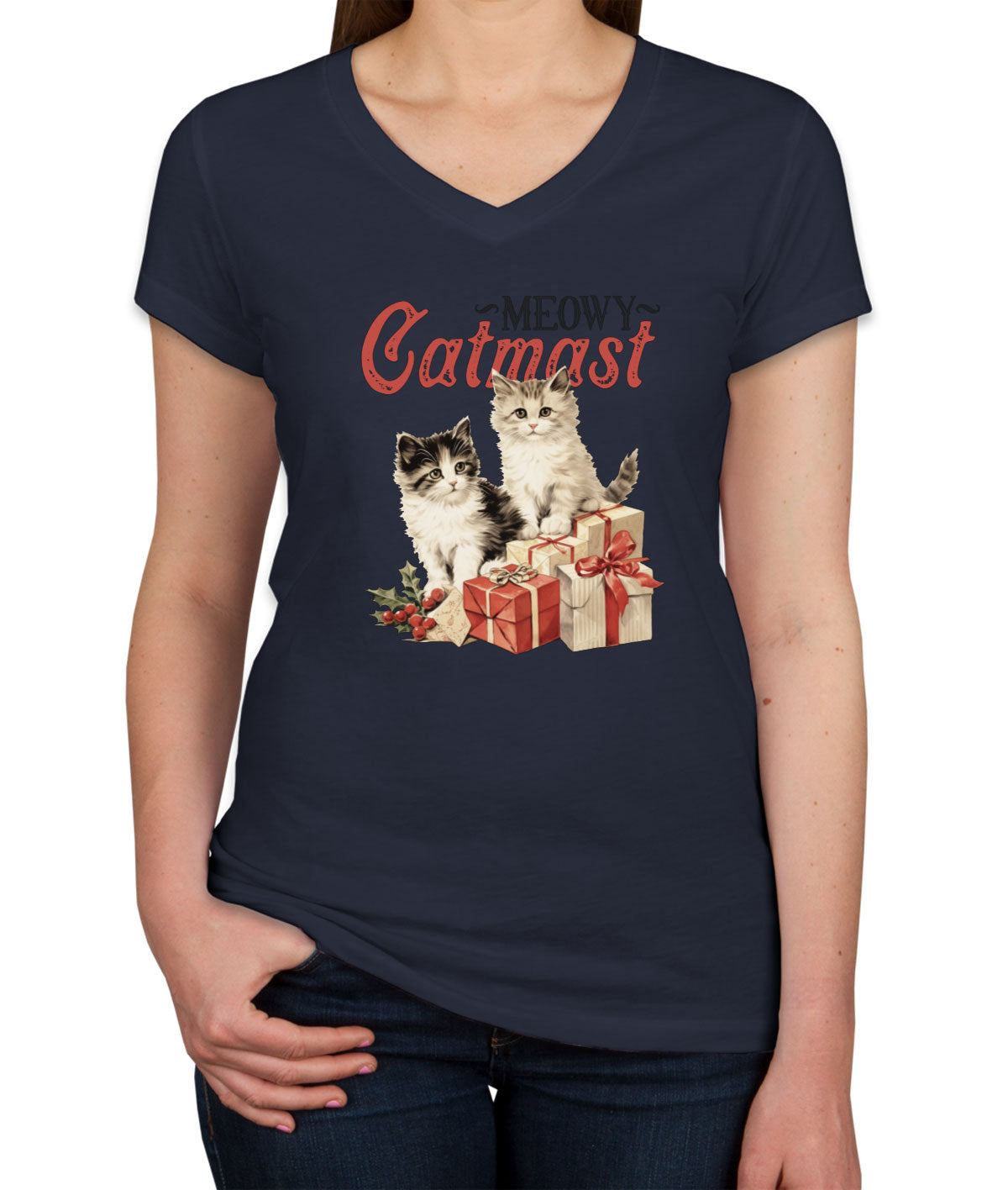 Meowy Catmast Christmas Women's V Neck T-shirt