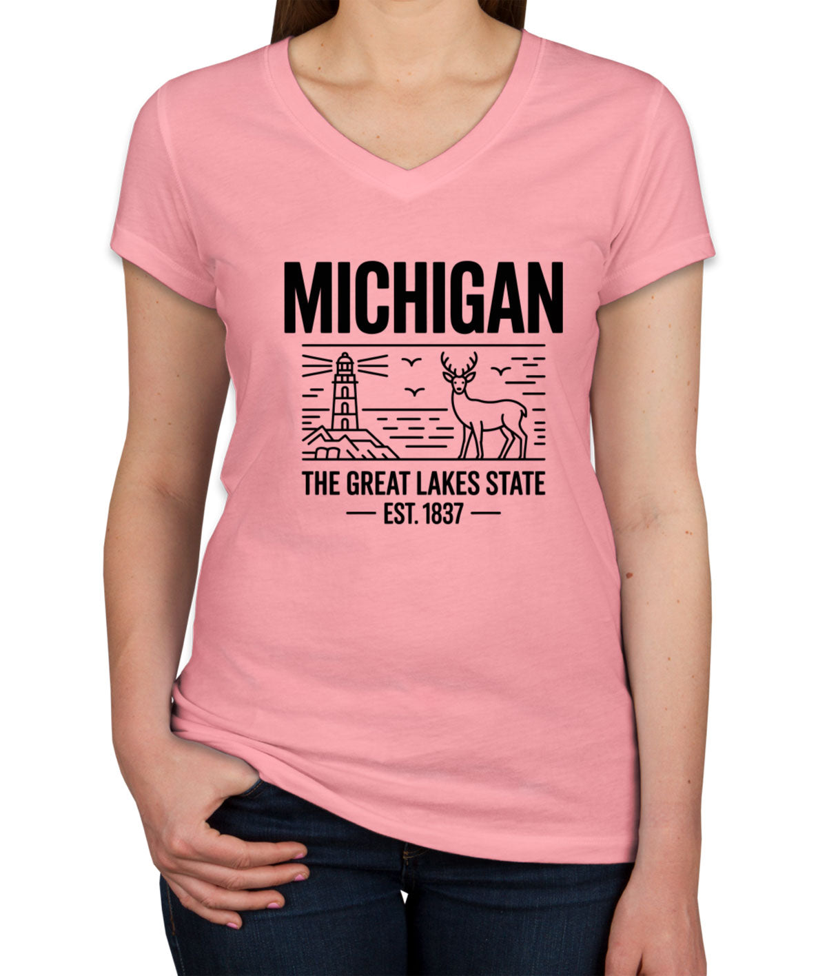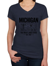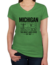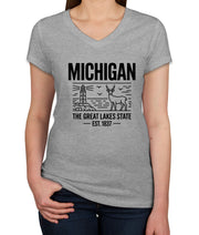 Michigan Cityscape Illustration The Great Lakes State Women's V Neck T-shirt