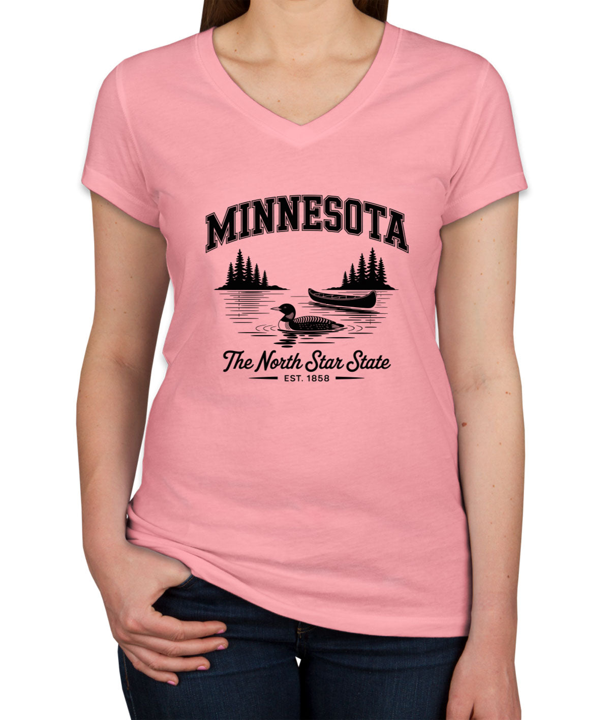 Minnesota Cityscape Illustration The North Star State Women's V Neck T-shirt