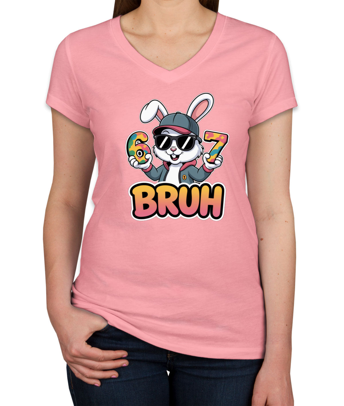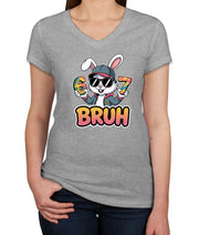 Six Seven Sixty Seven Bruh Bunny Easter Women's V Neck T-shirt