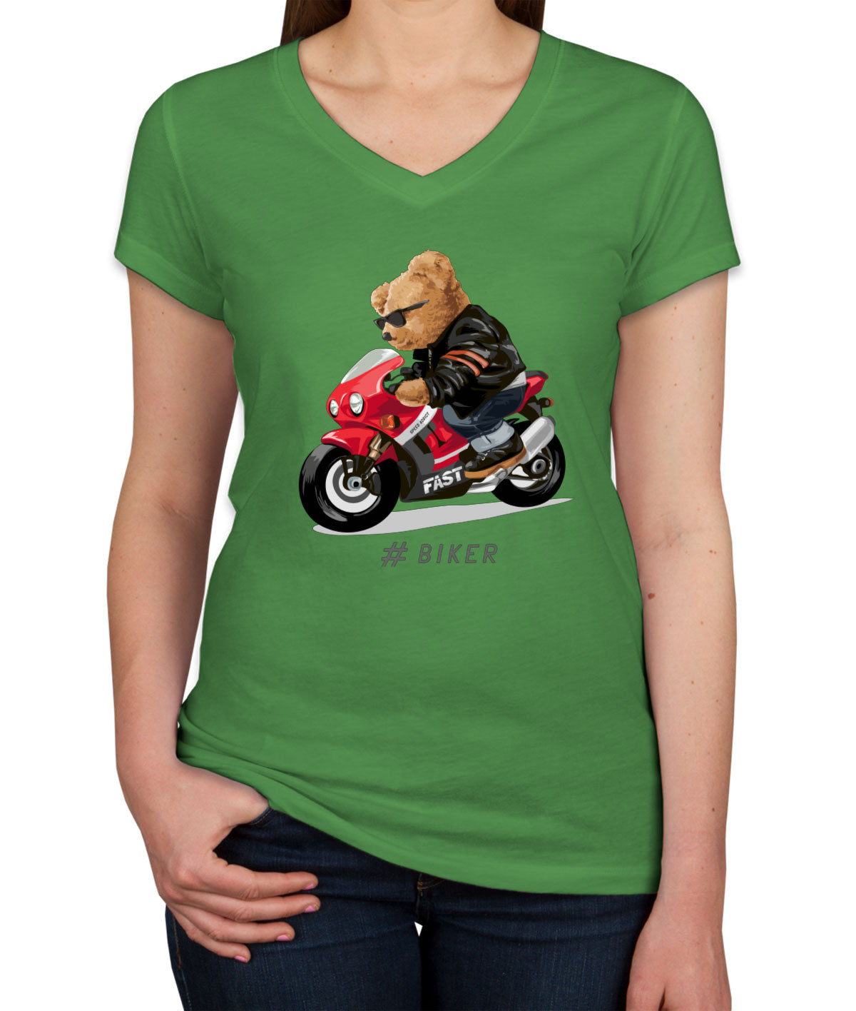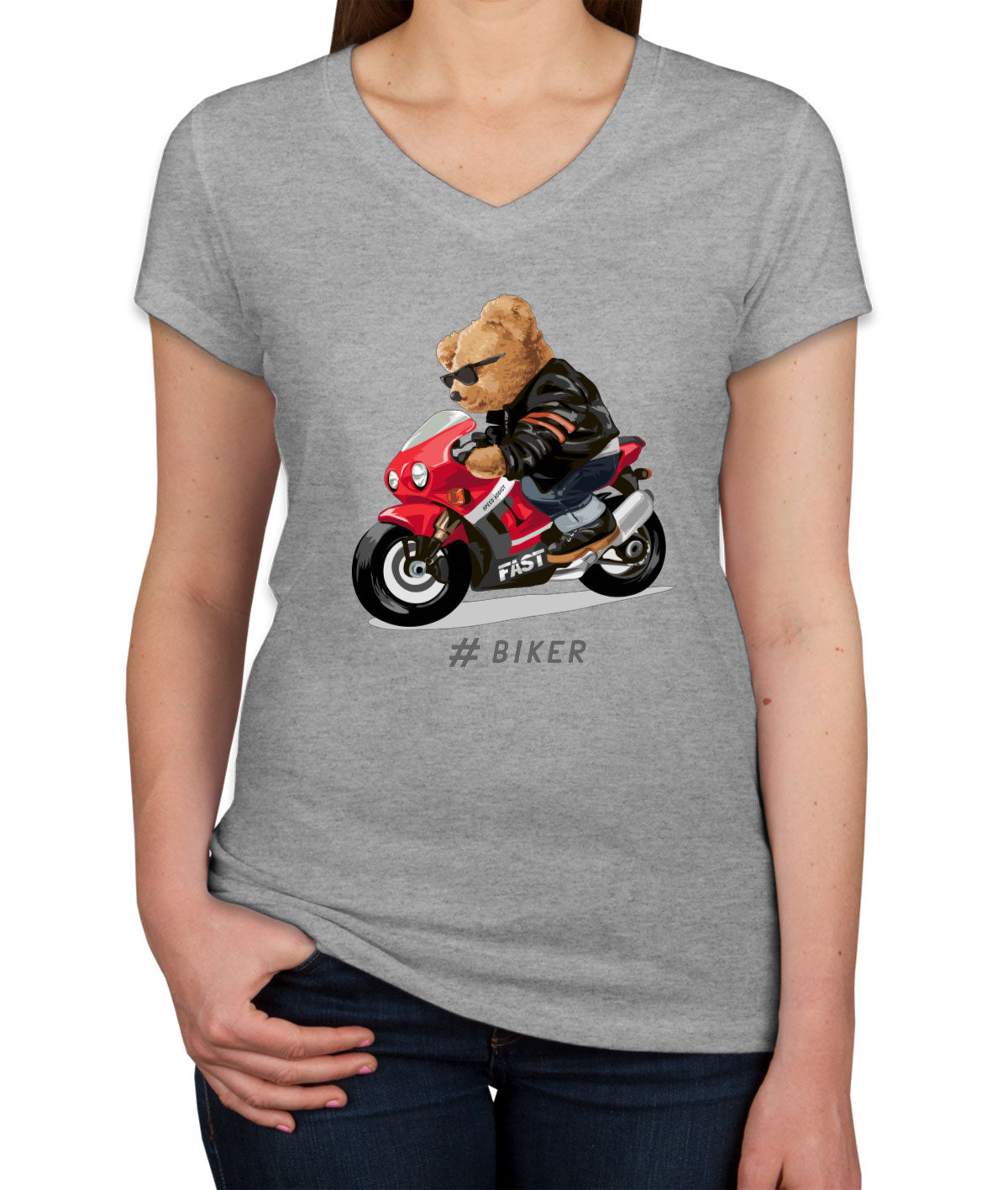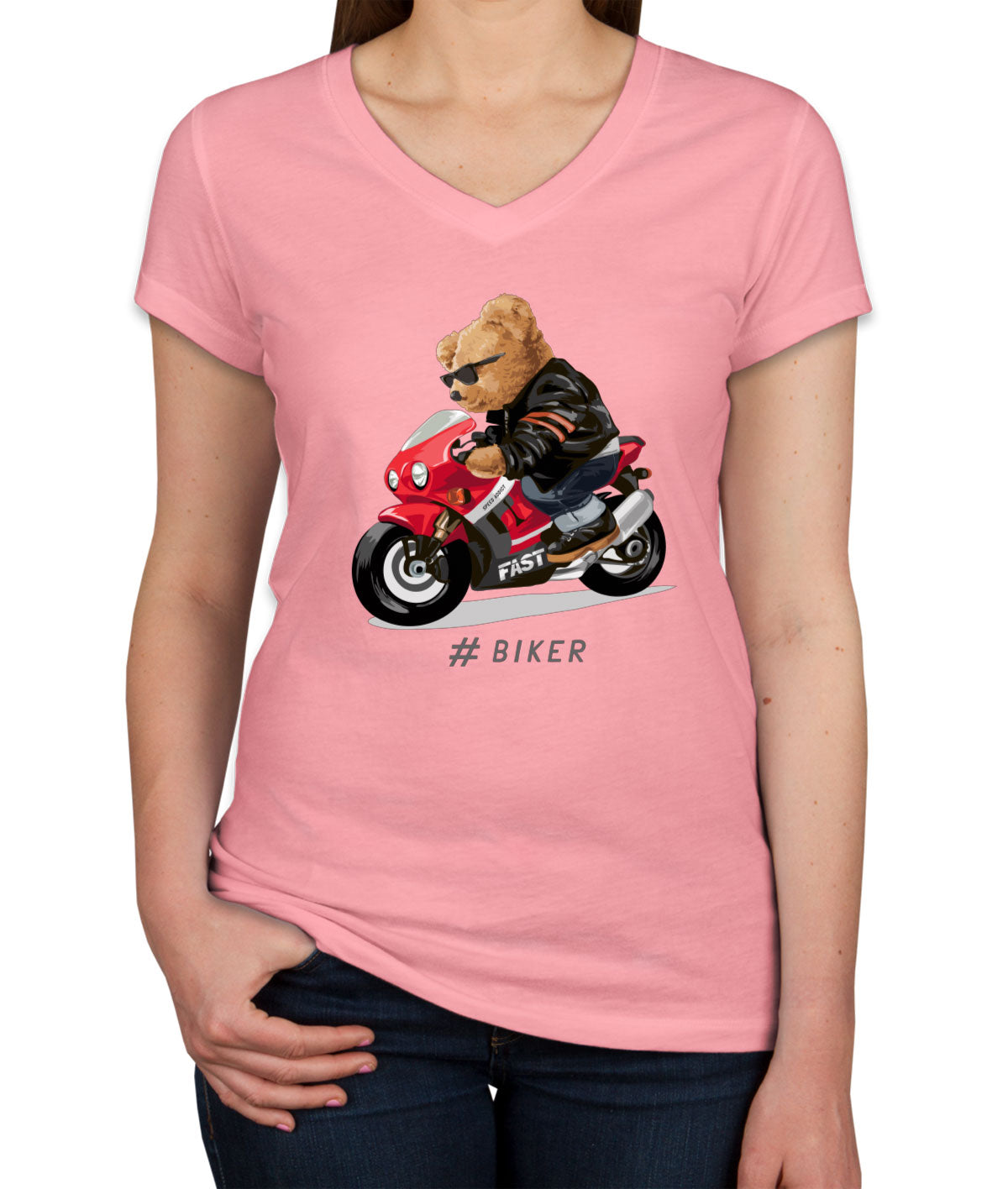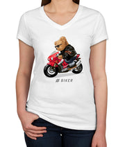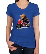 Teddy Bear Cool Biker Women's V Neck T-shirt
