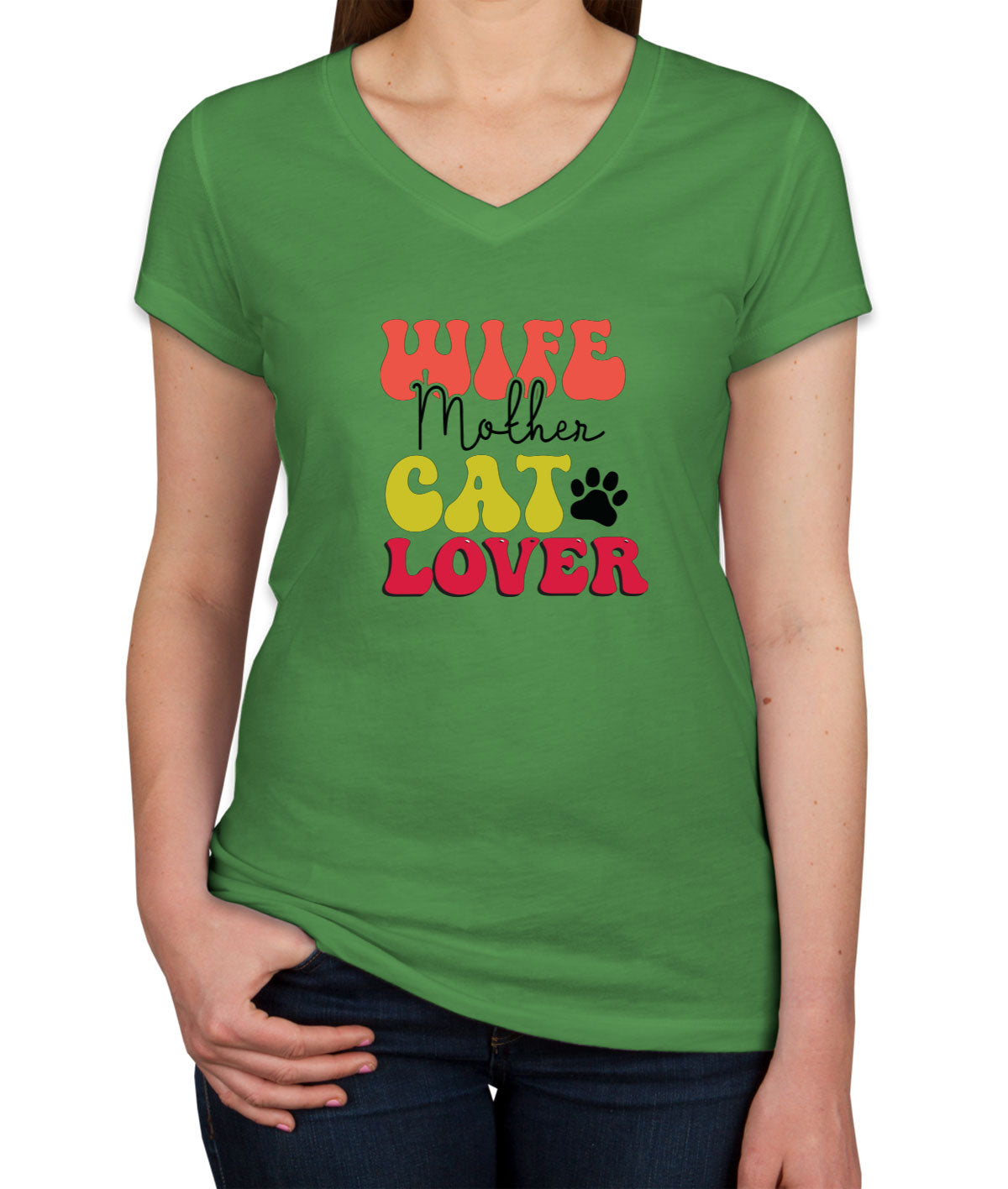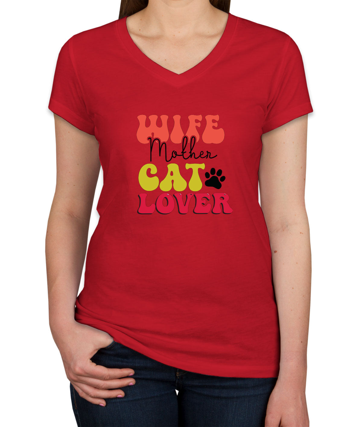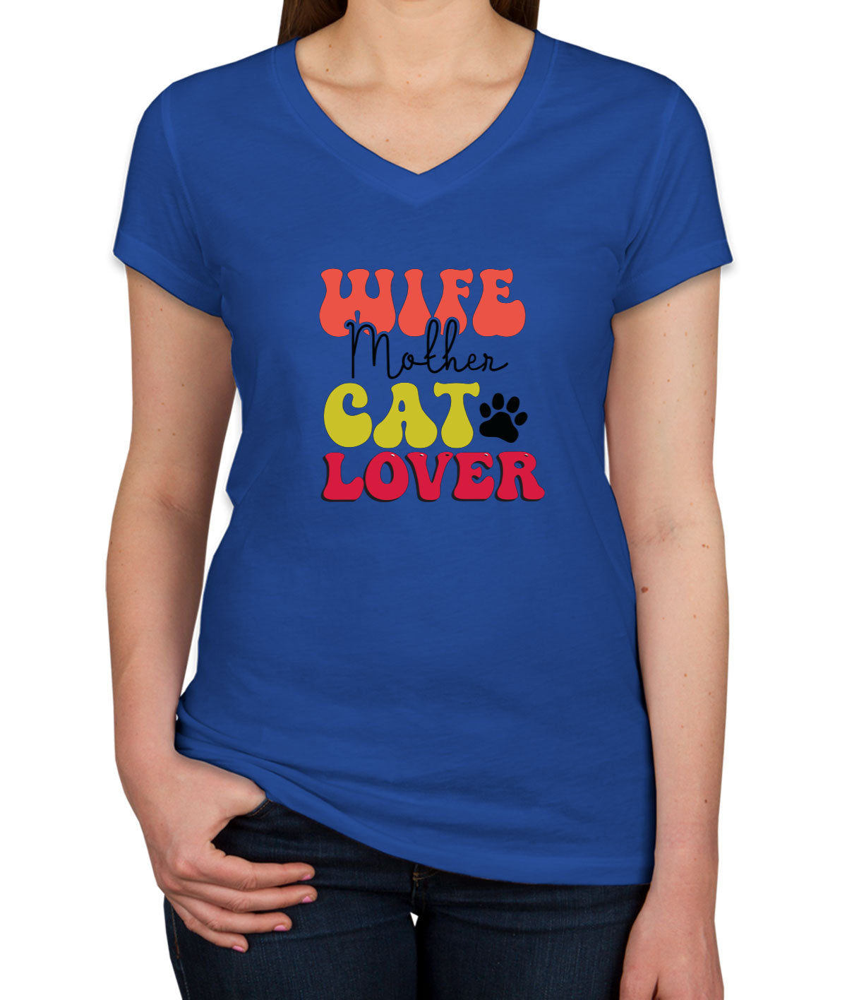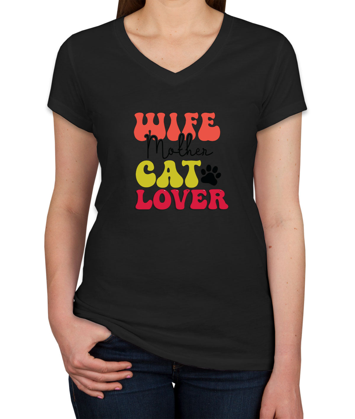 Wife Mother Cat Lover Mother's Day Women's V Neck T-shirt