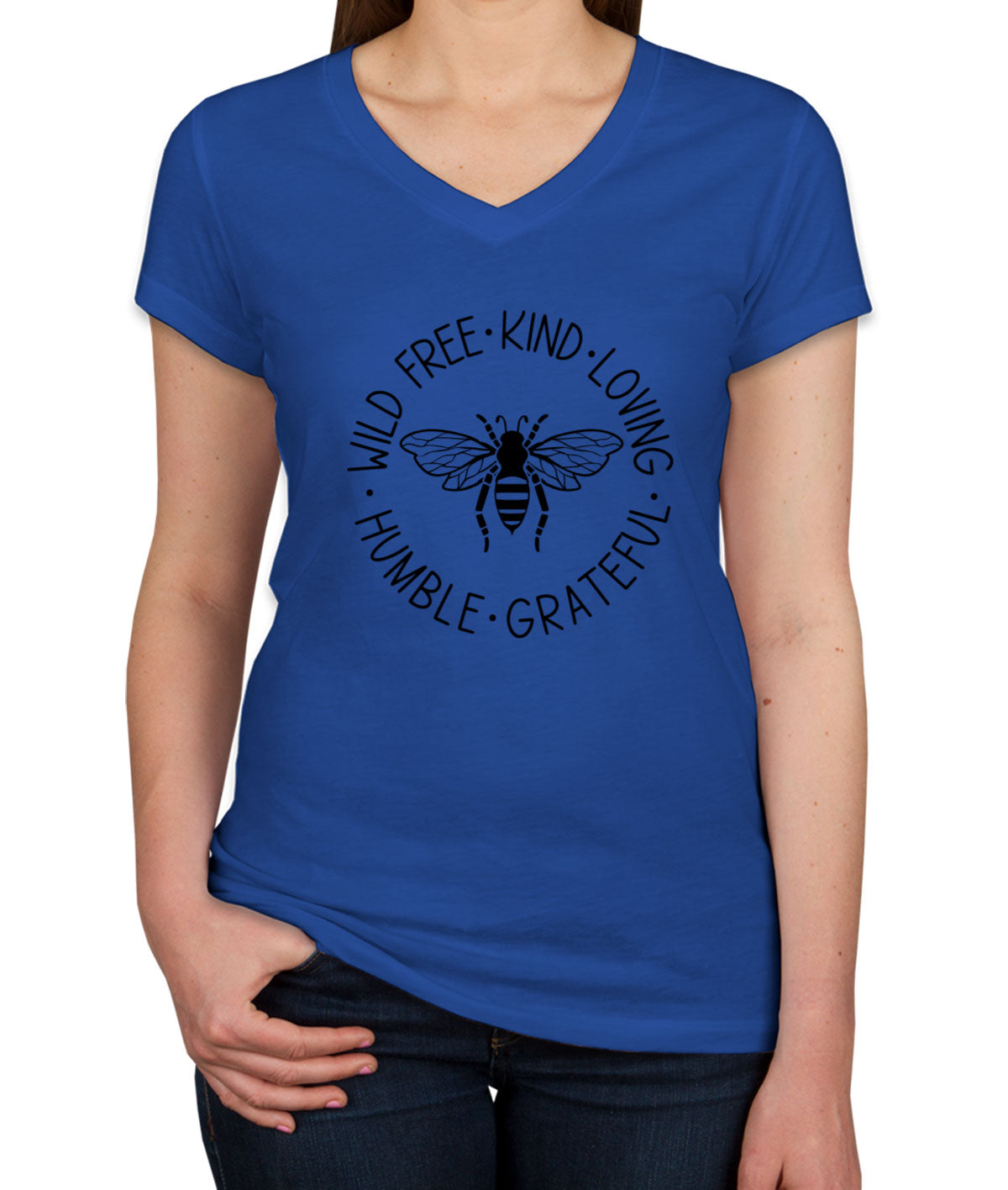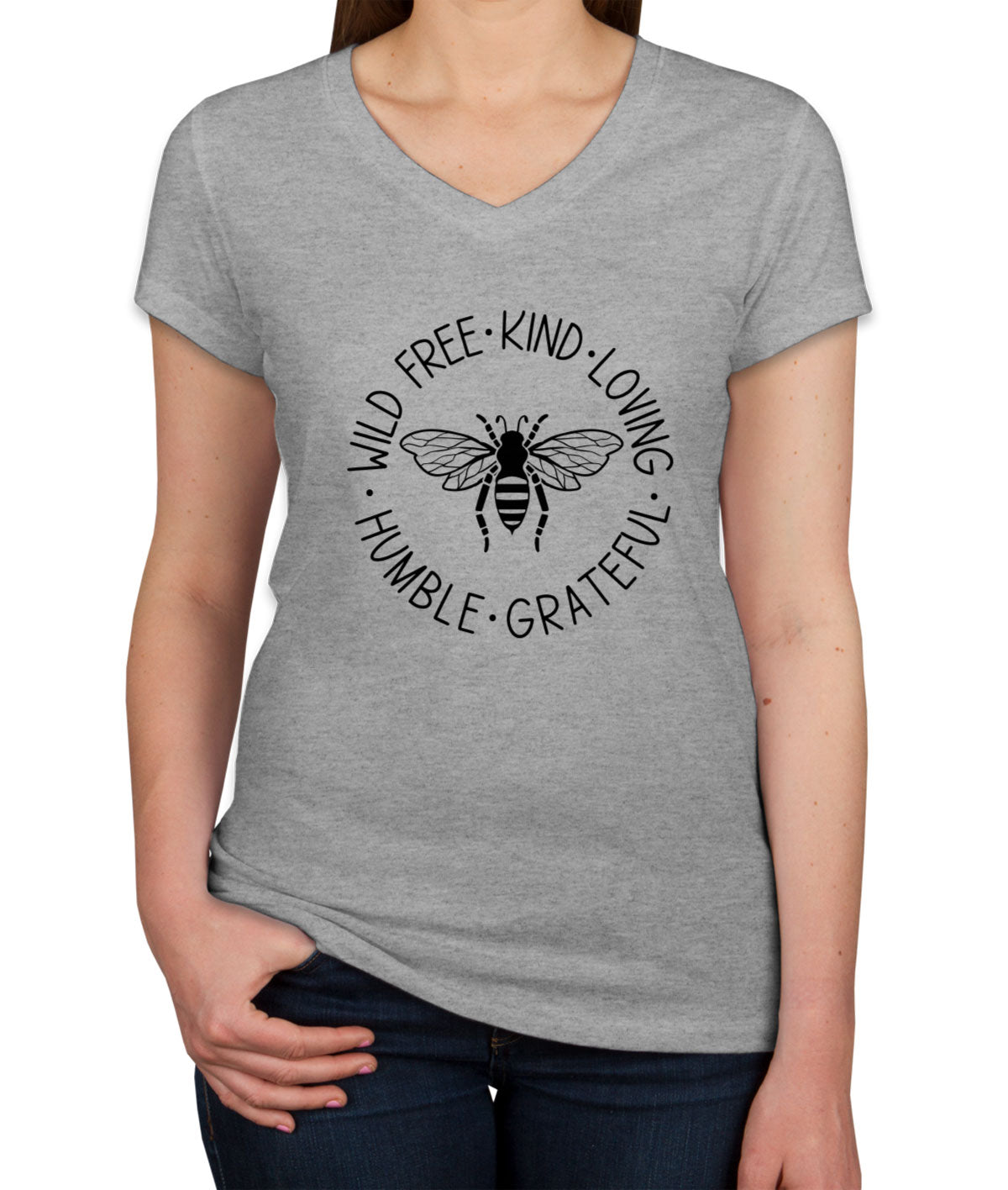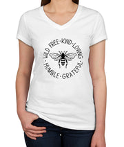 Wild Free Kind Loving Humble Grateful Bee Women's V Neck T-shirt