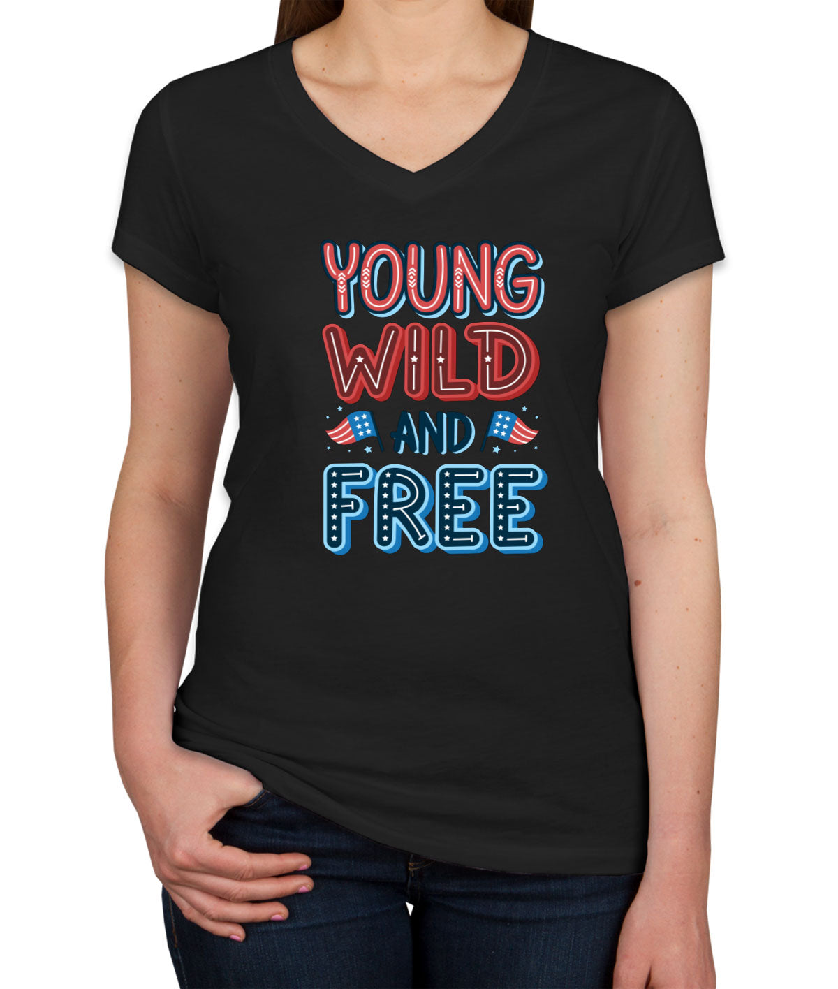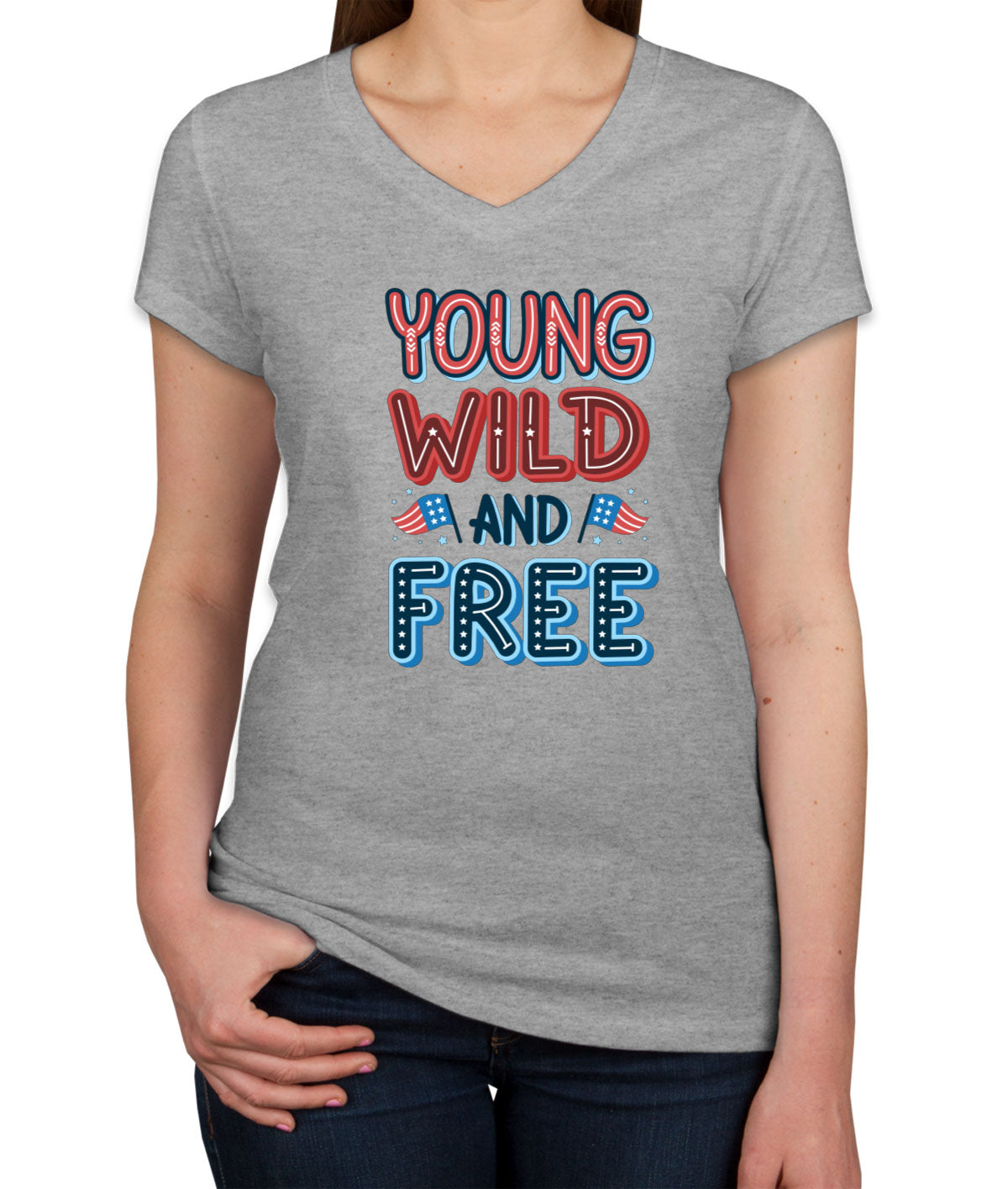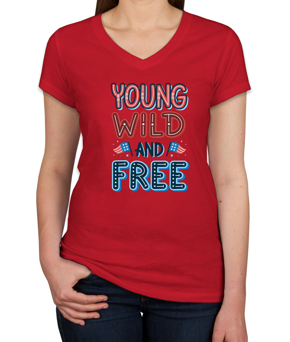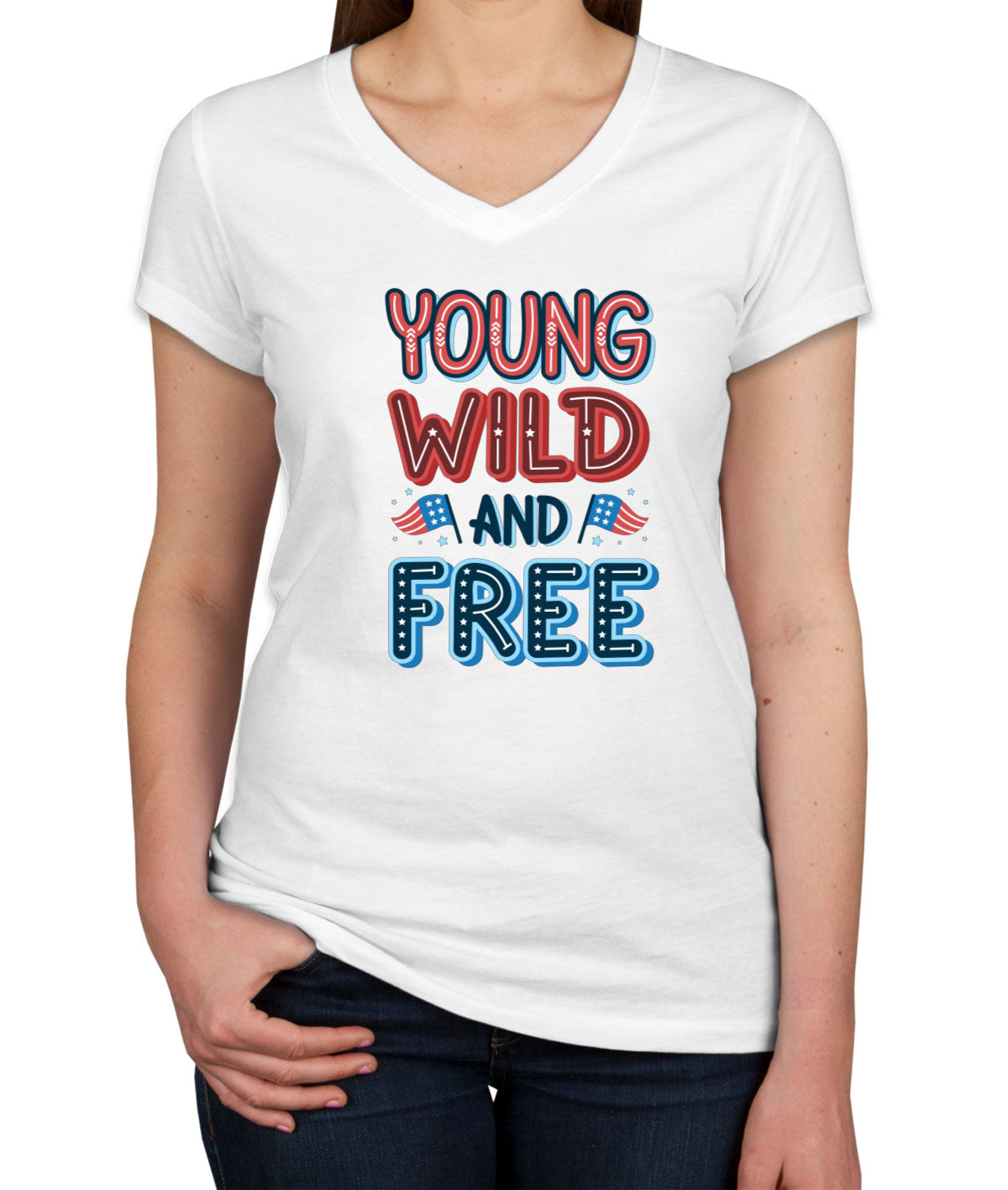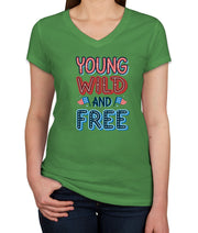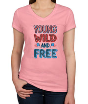 Young Wild And Free Patriotic Women's V Neck T-shirt