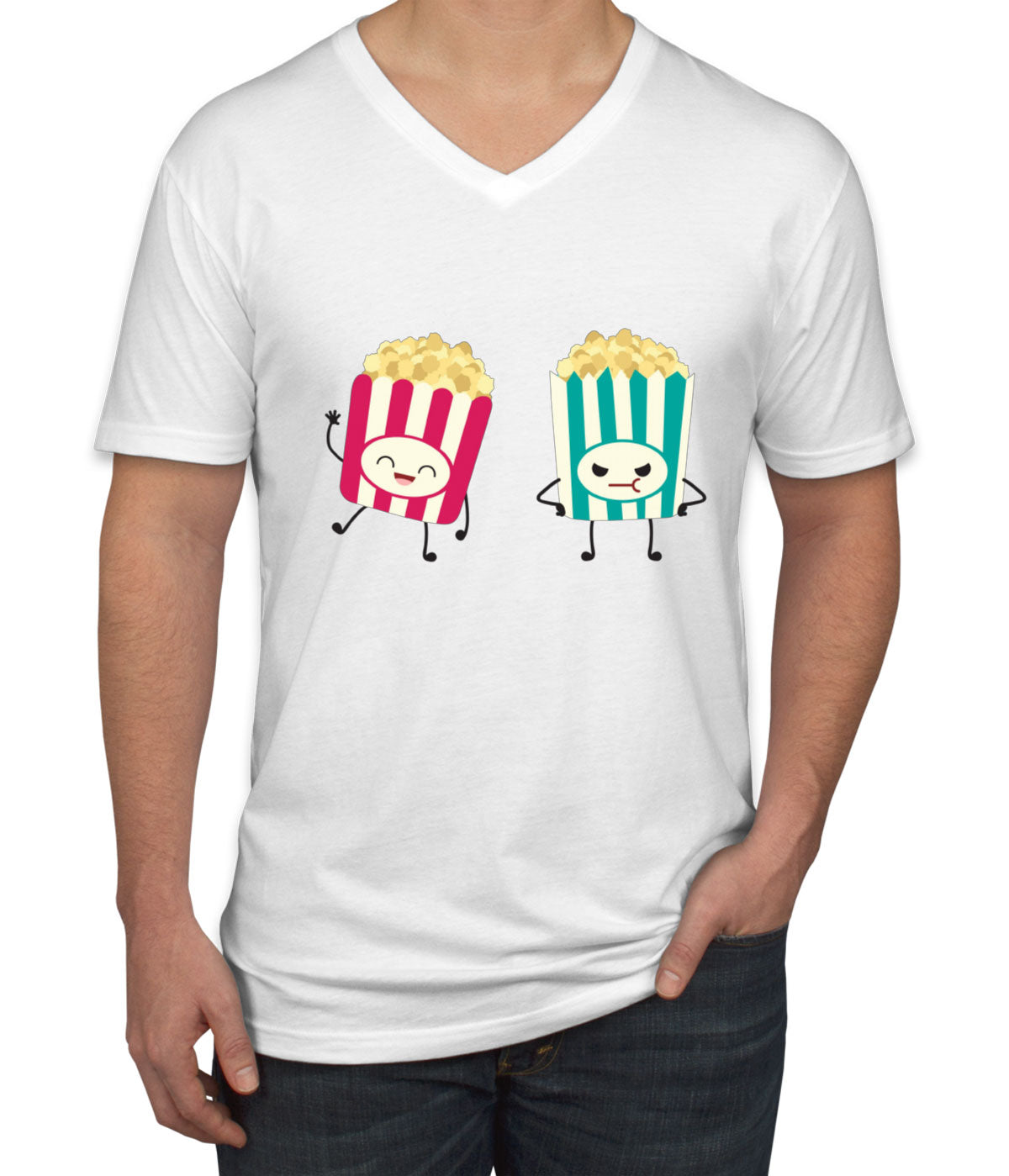 Cute Popcorn Men's V Neck T-shirt
