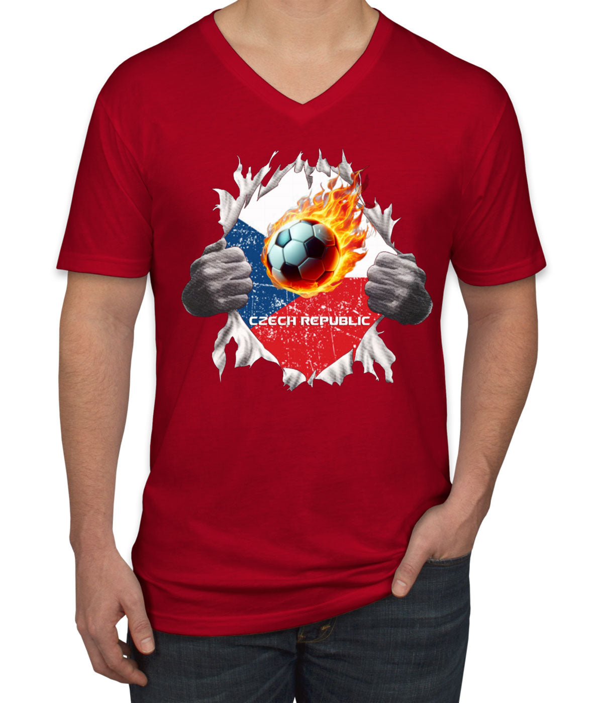 Czech Republic Euro Cup Soccer Football Men's V Neck T-shirt