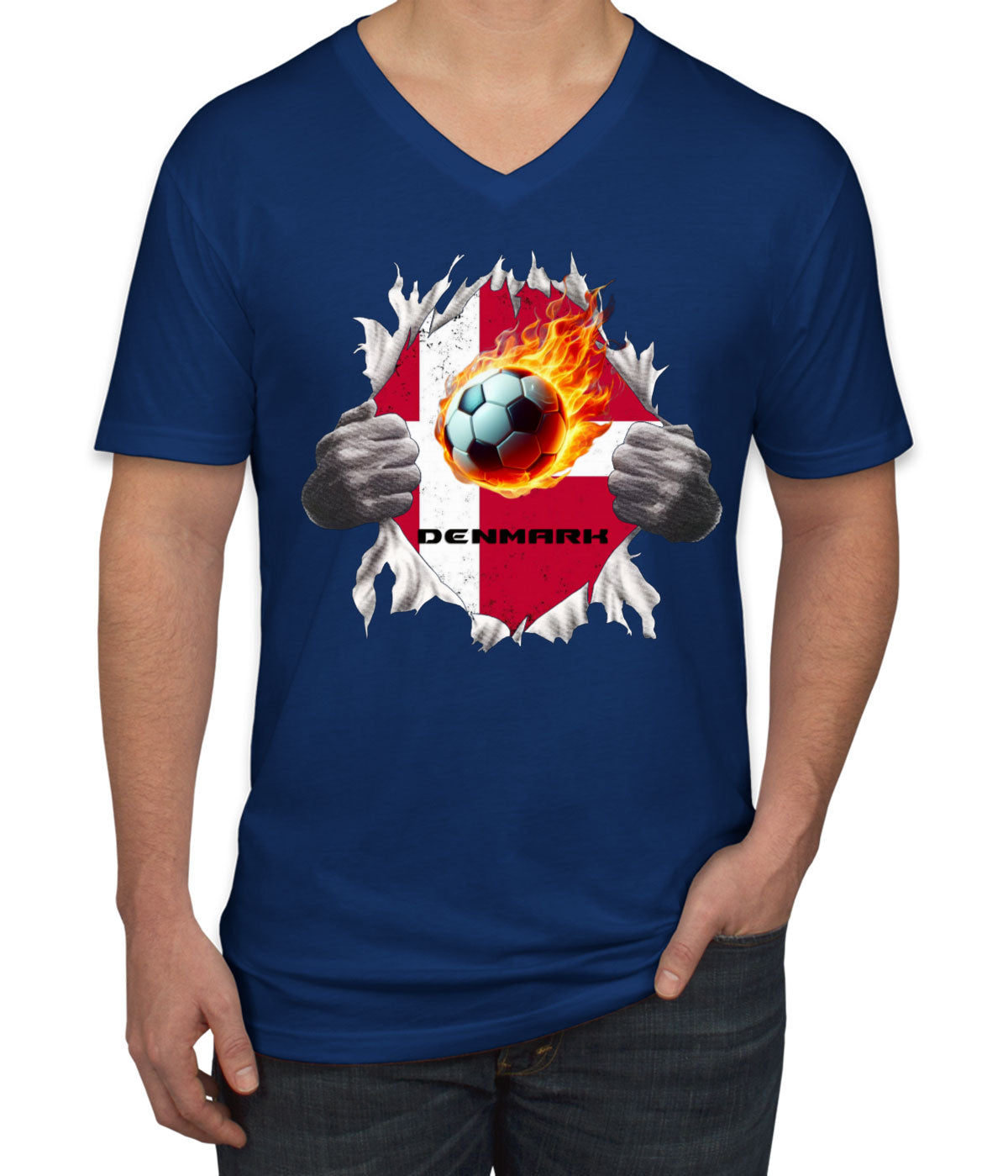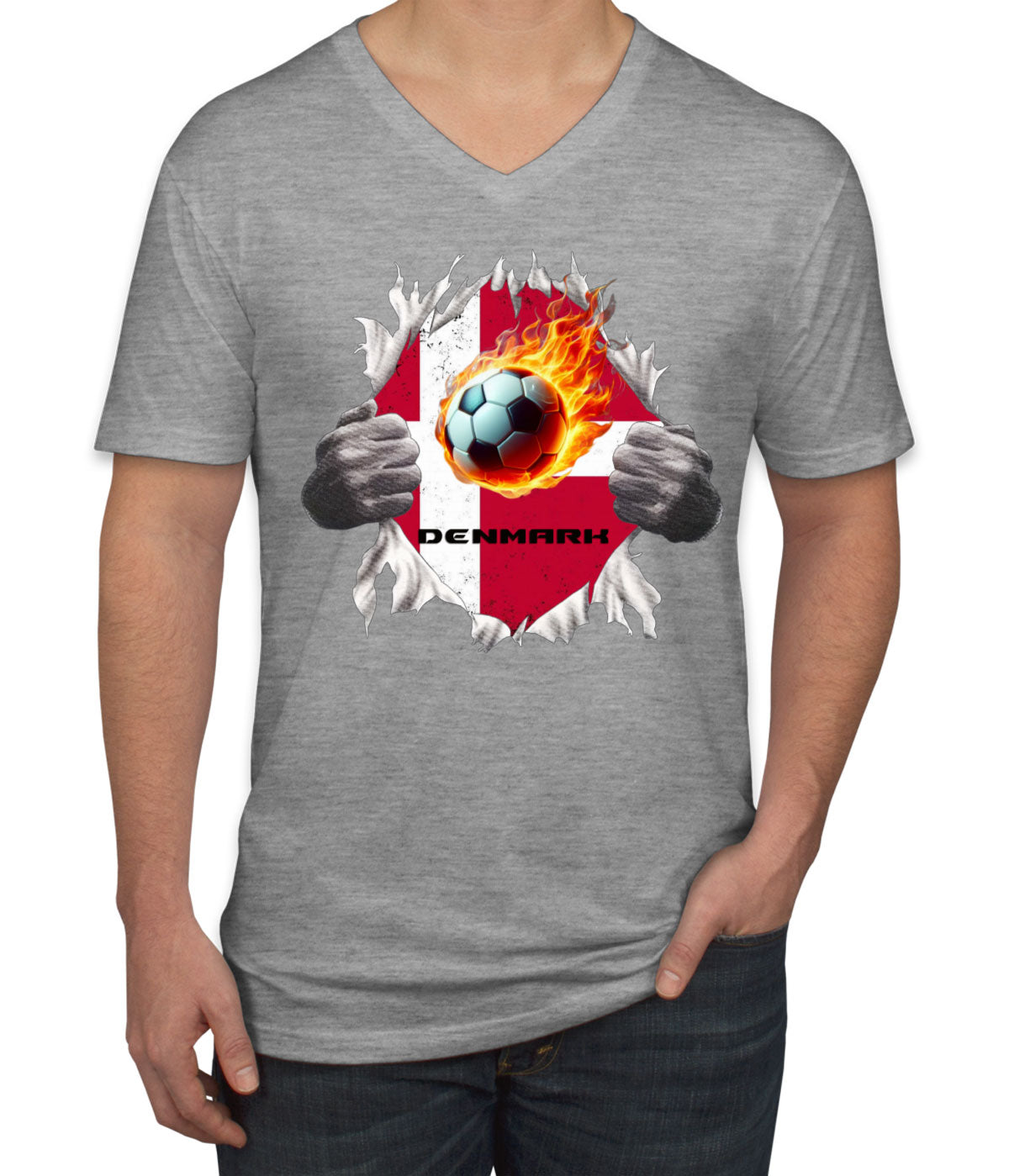 Denmark Euro Cup Soccer Football Men's V Neck T-shirt