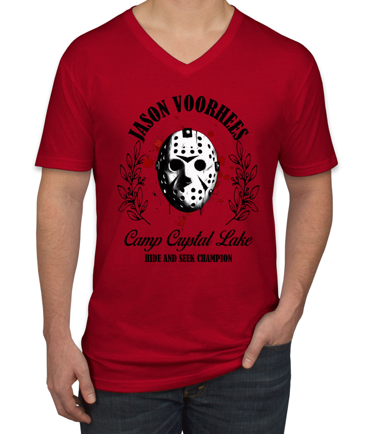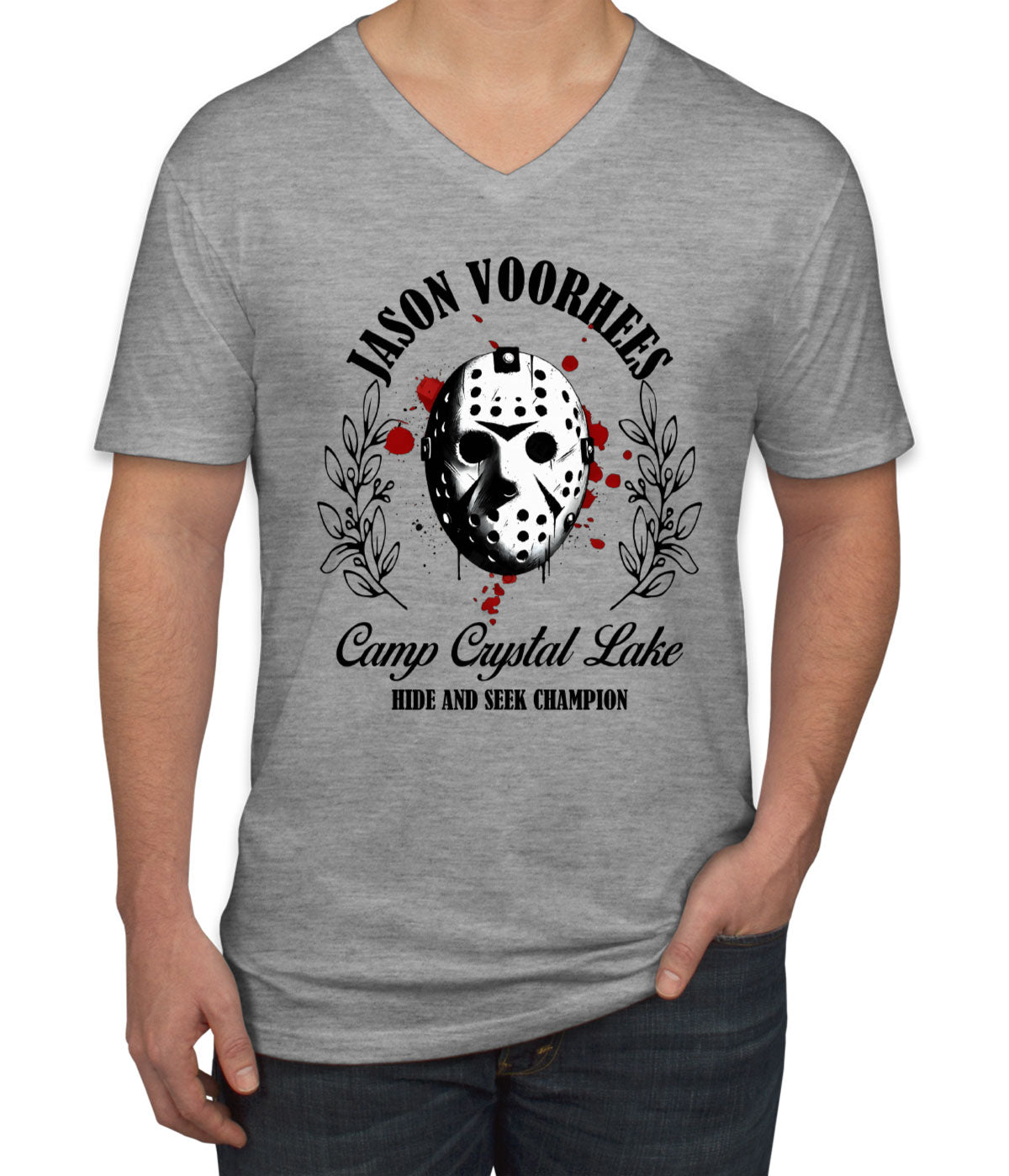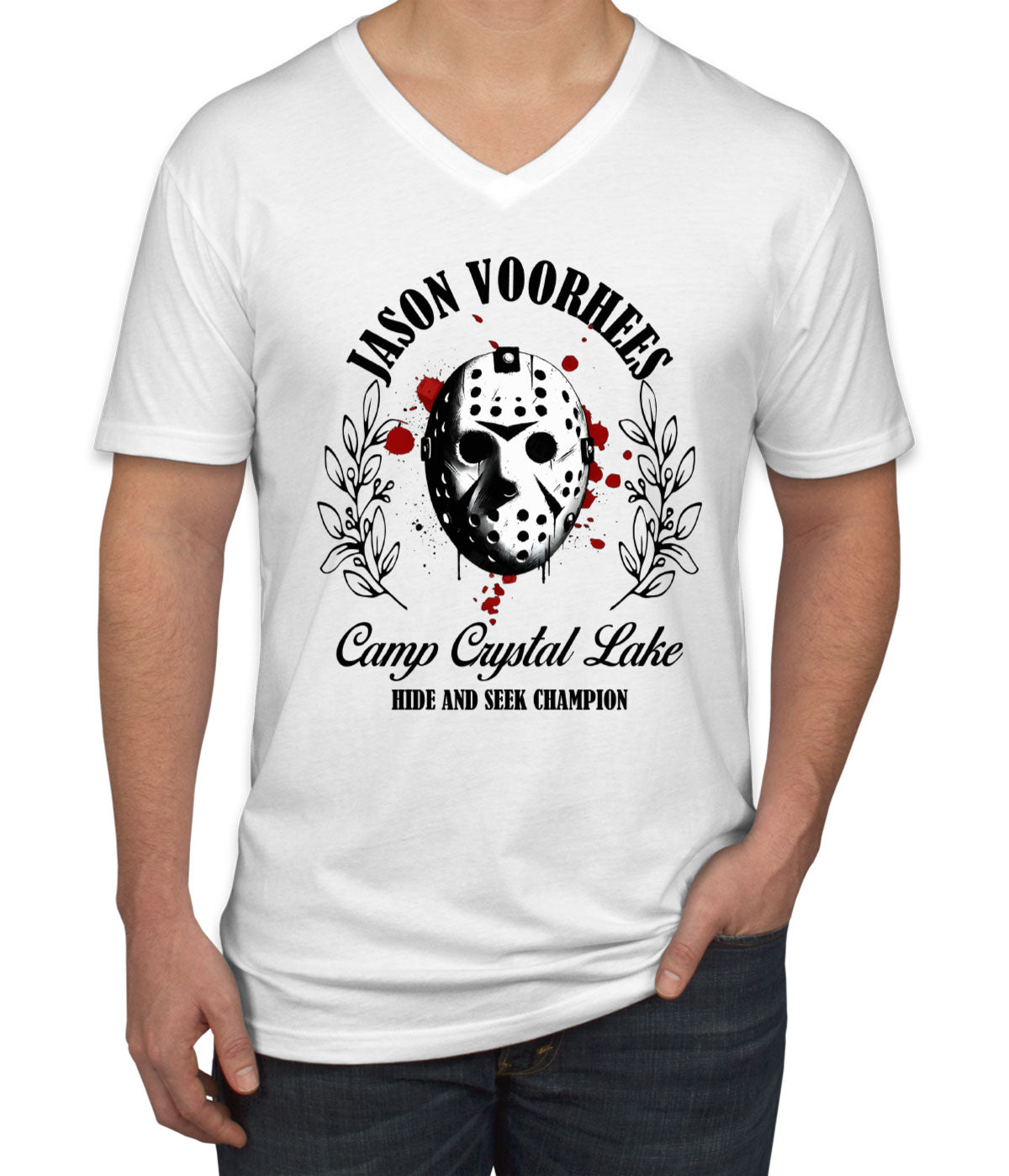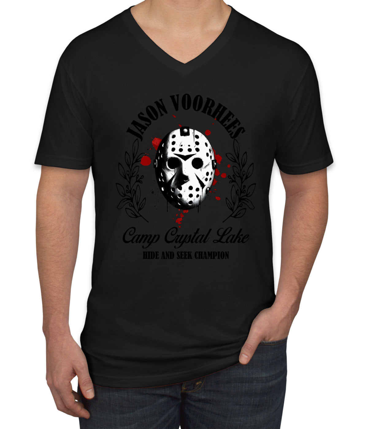 Jason Camp Crystal Lake Hide And Seek Champion Halloween Men's V Neck T-shirt