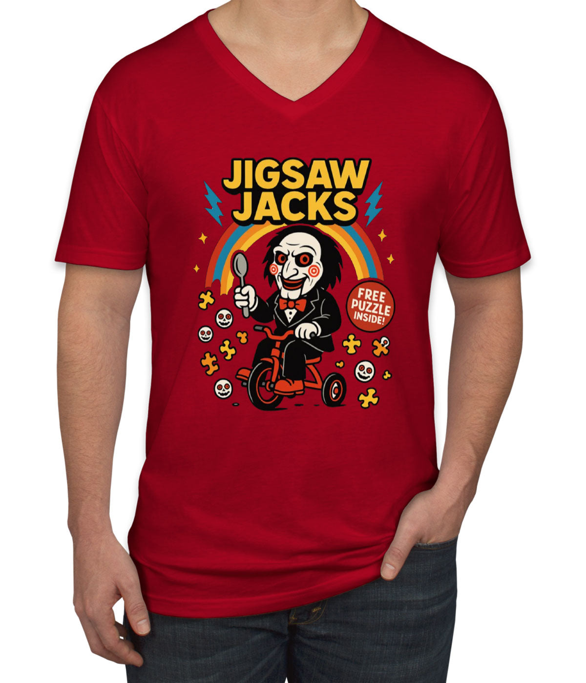 Jigsaw Jacks Halloween Men's V Neck T-shirt