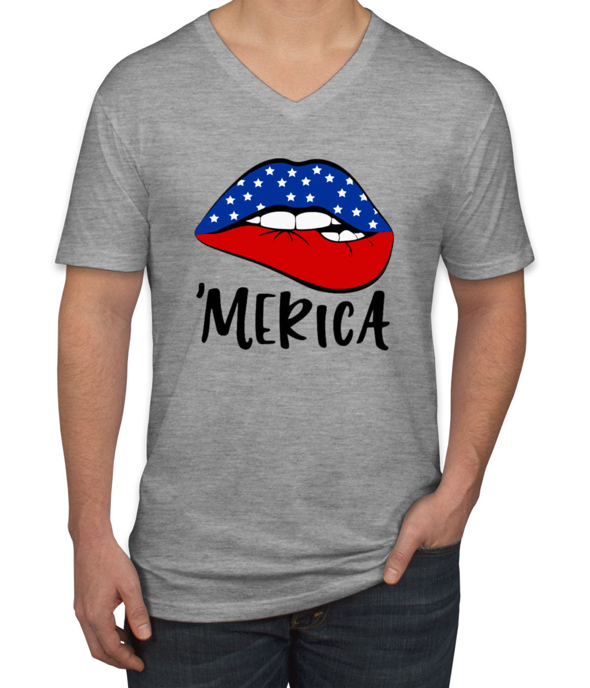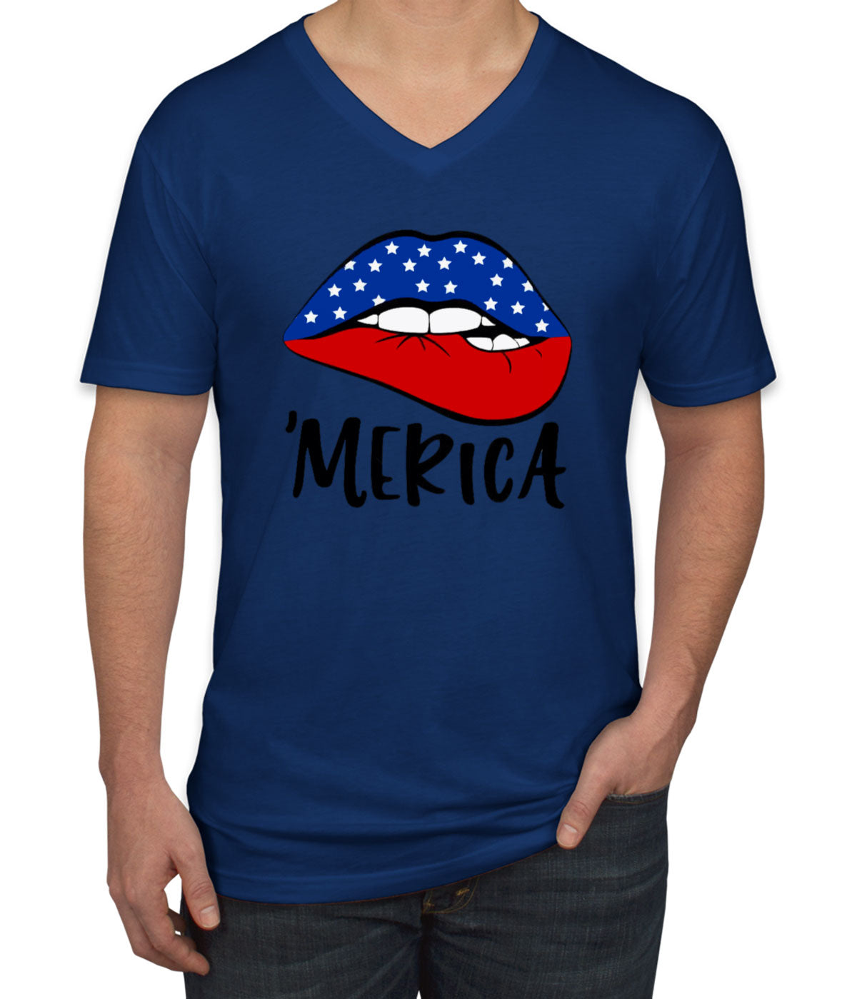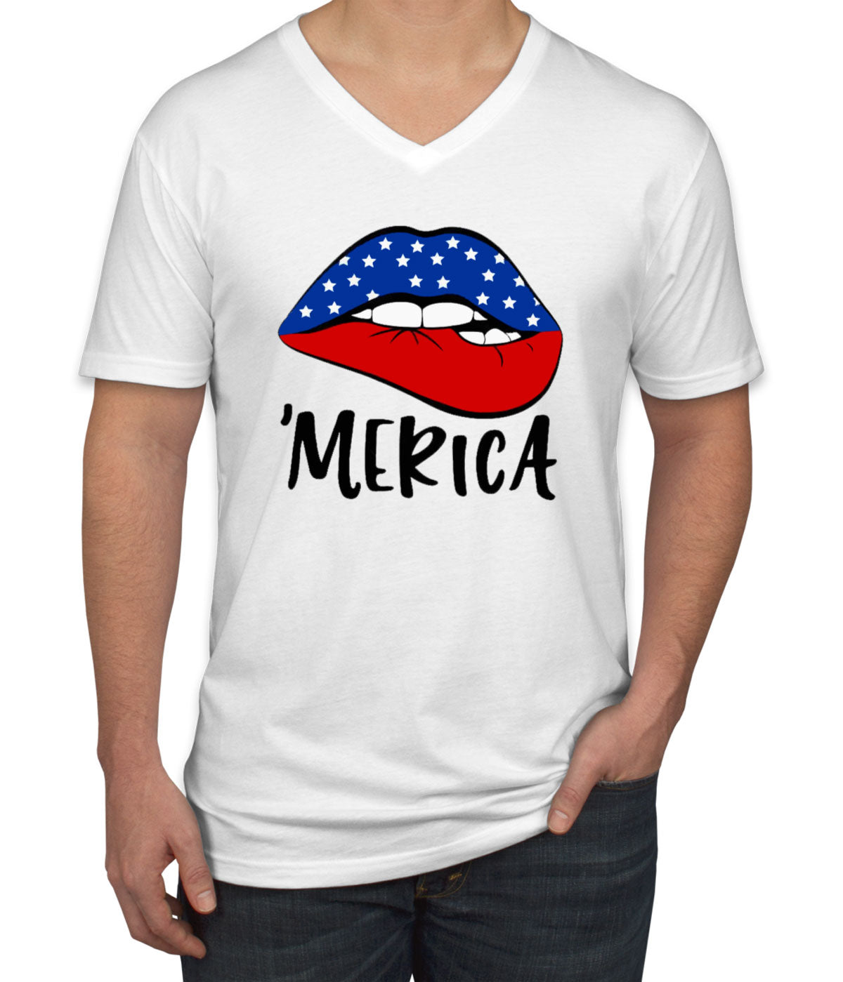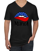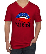 Lipstick Merica American Flag Patriotic Men's V Neck T-shirt